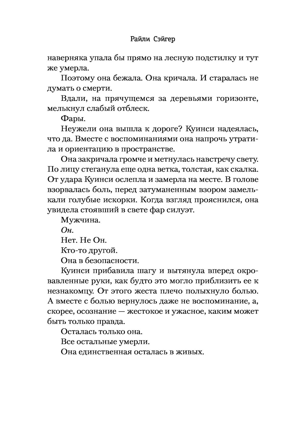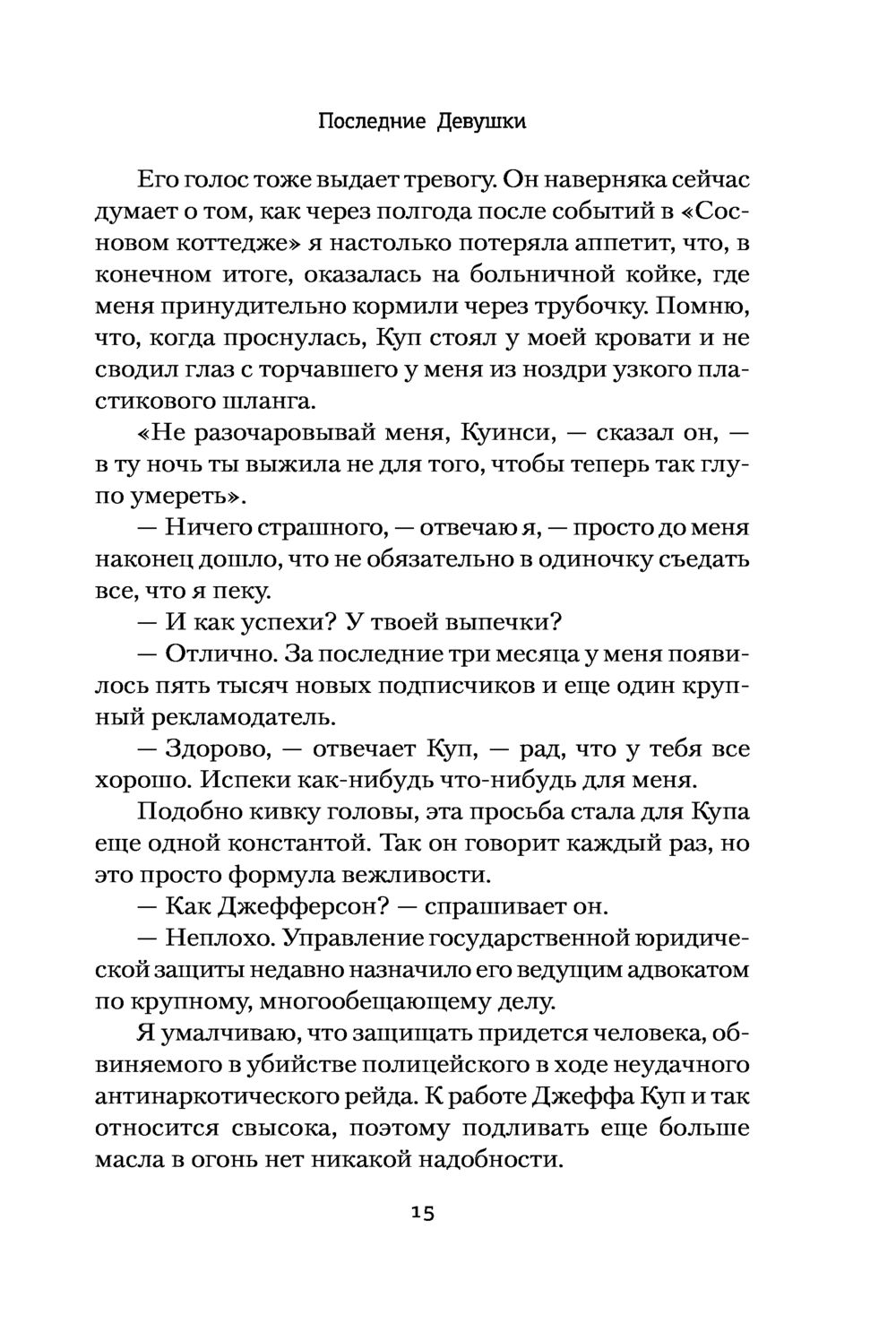 Вот только, в отличие от них, Куинси не помнит, что произошло в том коттедже. Ее мозг будто бы спрятал от нее воспоминания обо всех кровавых ужасах. Куинси изо всех сил старается стать обычным человеком, и ей это почти удается. Она живет с внимательным и заботливым бойфрендом, ведет популярный кондитерский блог и благодаря лекарствам почти не вспоминает о давней трагедии.