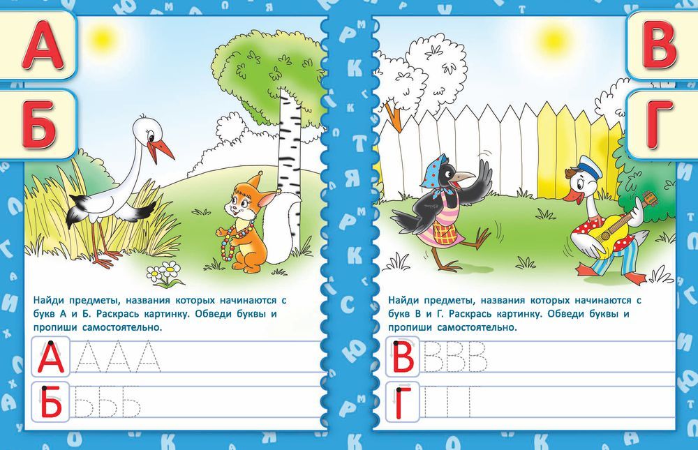Однажды ребята встретили деда Стоведа: буквы в азбуке кто-то так напугал, что они попрятались! Но если внимательно всмотреться в картинки, то можно найти предметы, названия которых начинаются с пропавших букв.
