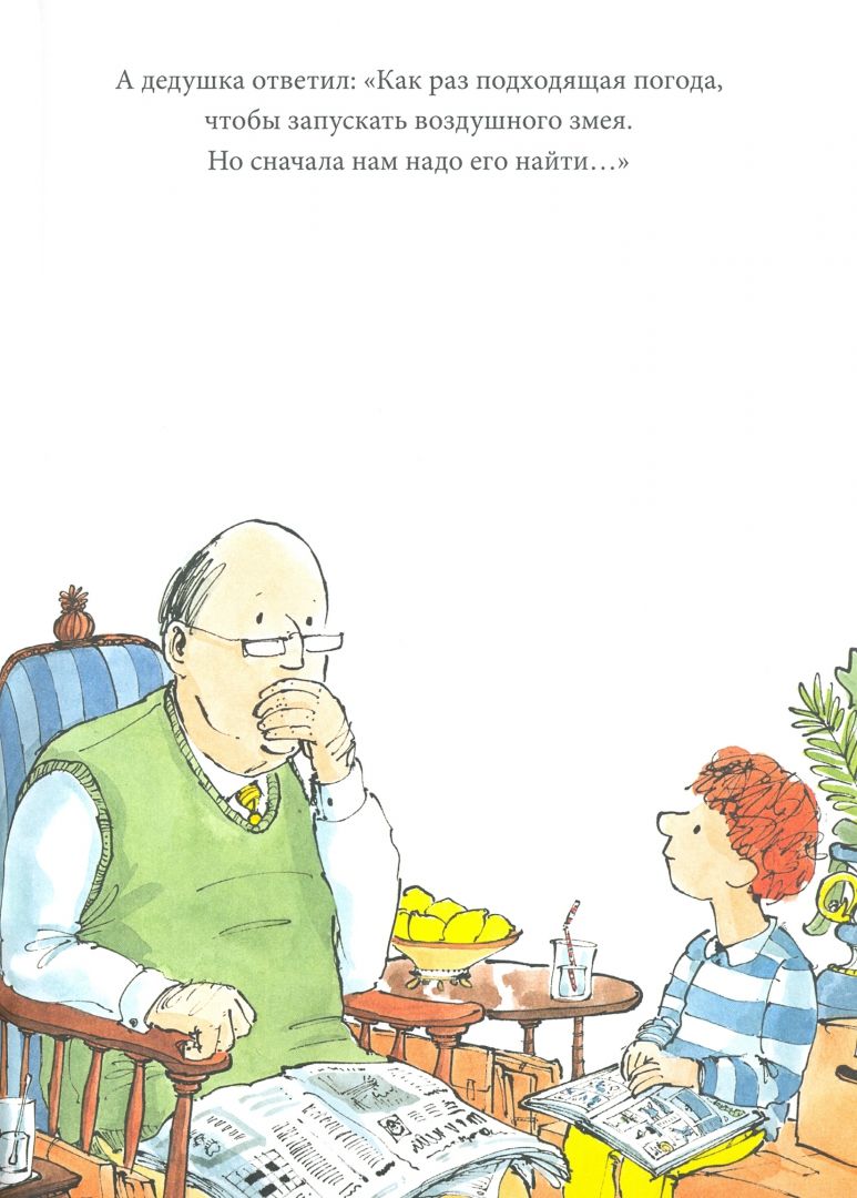 За окном бушует ветер, а дедушка с внуком уверены: это отличная погода, чтобы запустить воздушного змея. Вот только змея ещё надо найти...