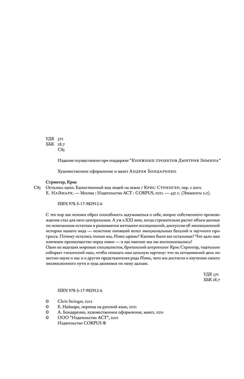 Крис Стрингер, один из ведущих специалистов в реконструкции эволюции современного человека, подробно и доступно рассказывает, как ученые постепенно углублялись все дальше и дальше в прошлое, какие открытия они там делали и как камень за камнем собирали пеструю мозаику, рассказывающую о происхождении и развитии нашего вида.