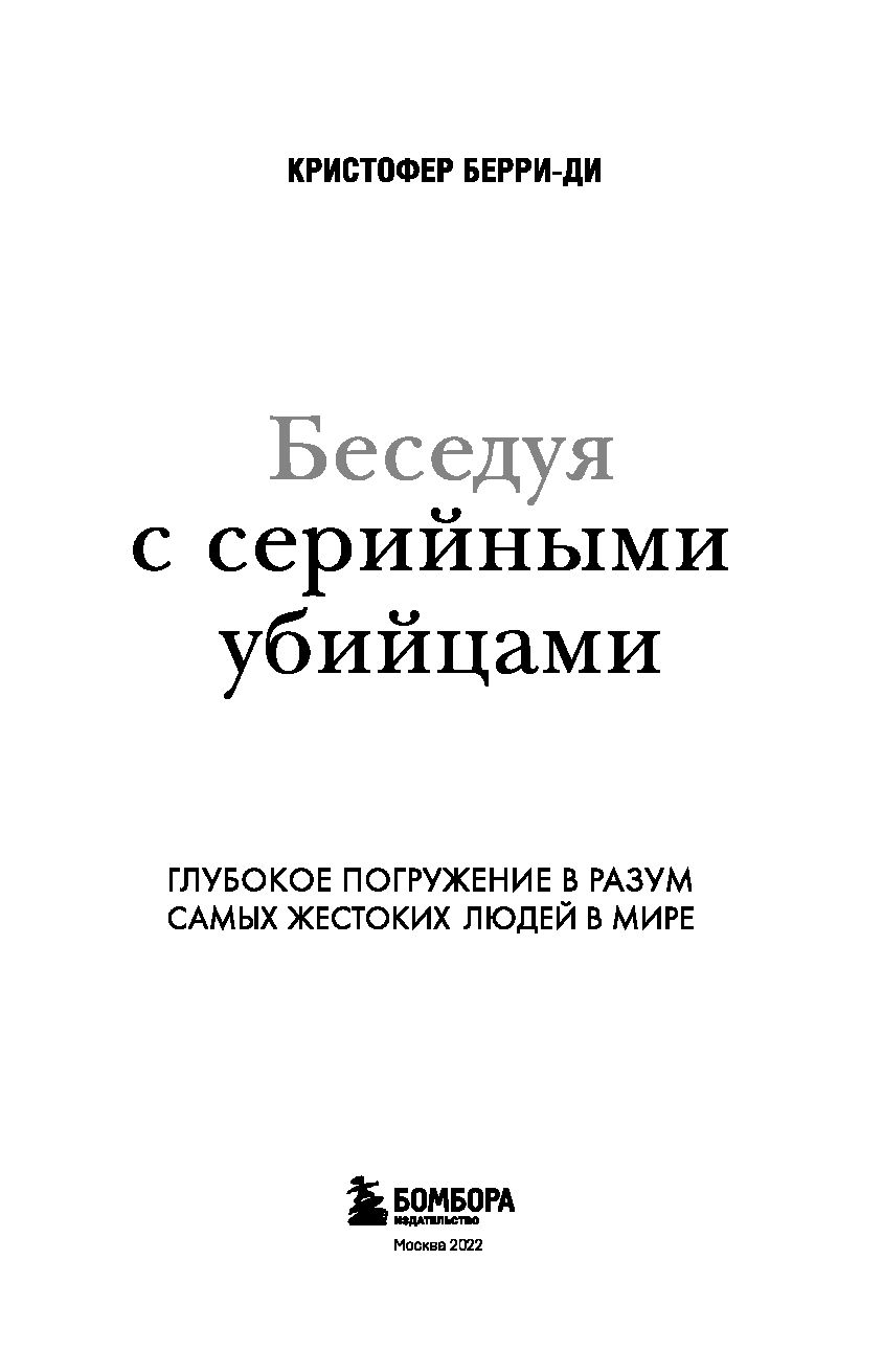10 жестоких и изощренных маньяков, ожидающих своей участи в камерах смертников, откровенно и без особого сожаления рассказывают свои истории в книге британского криминалиста Кристофера Берри-Ди. Что сделало их убийцами? Как они выбирают своих жертв?