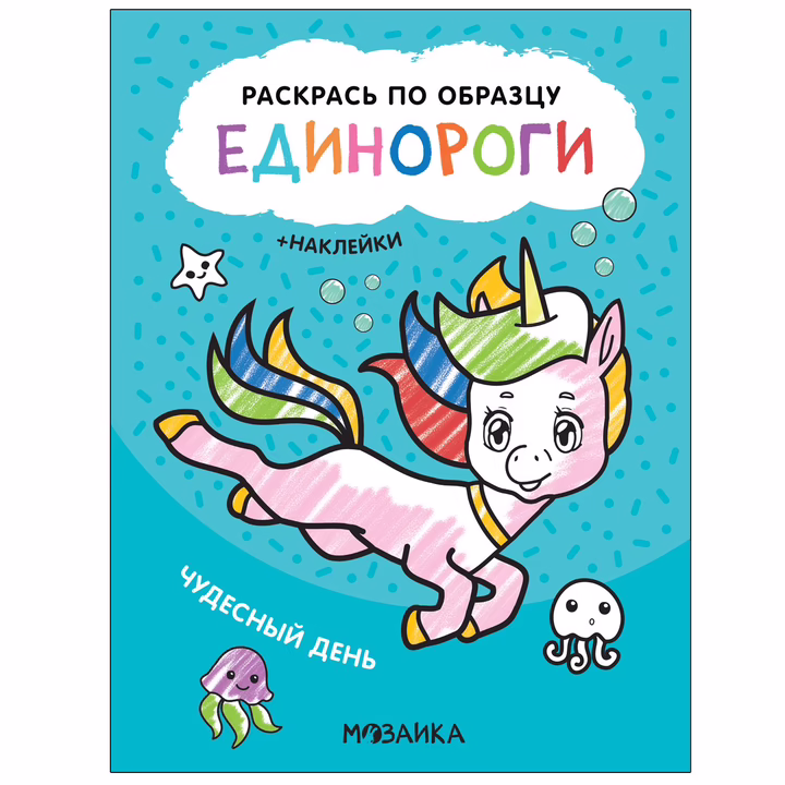 Раскрась по образцу. Единороги. Чудесный день (+ наклейки)