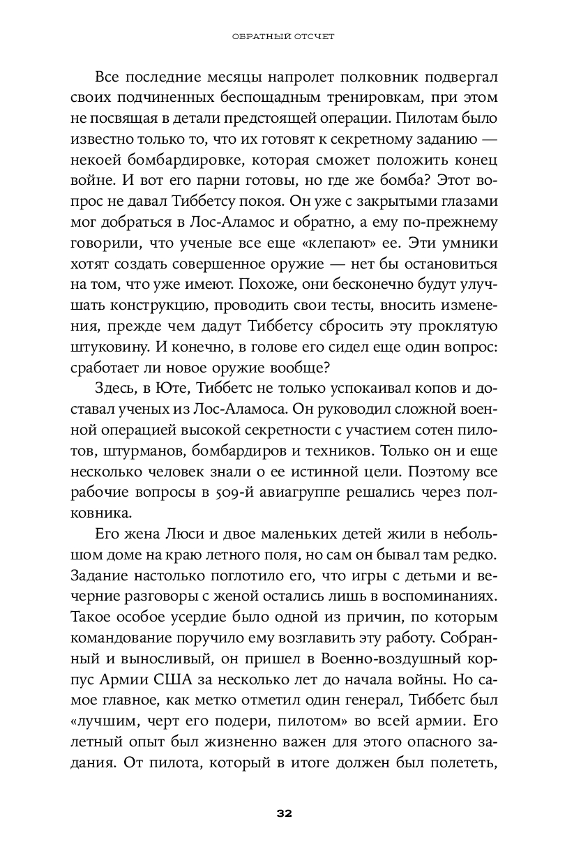 В книге "Обратный отсчёт" рассказывается захватывающая история бурных месяцев, недель и дней, предшествующих 6 августа 1945 года, когда Трумэн отдает приказ сбросить бомбу на Хиросиму.