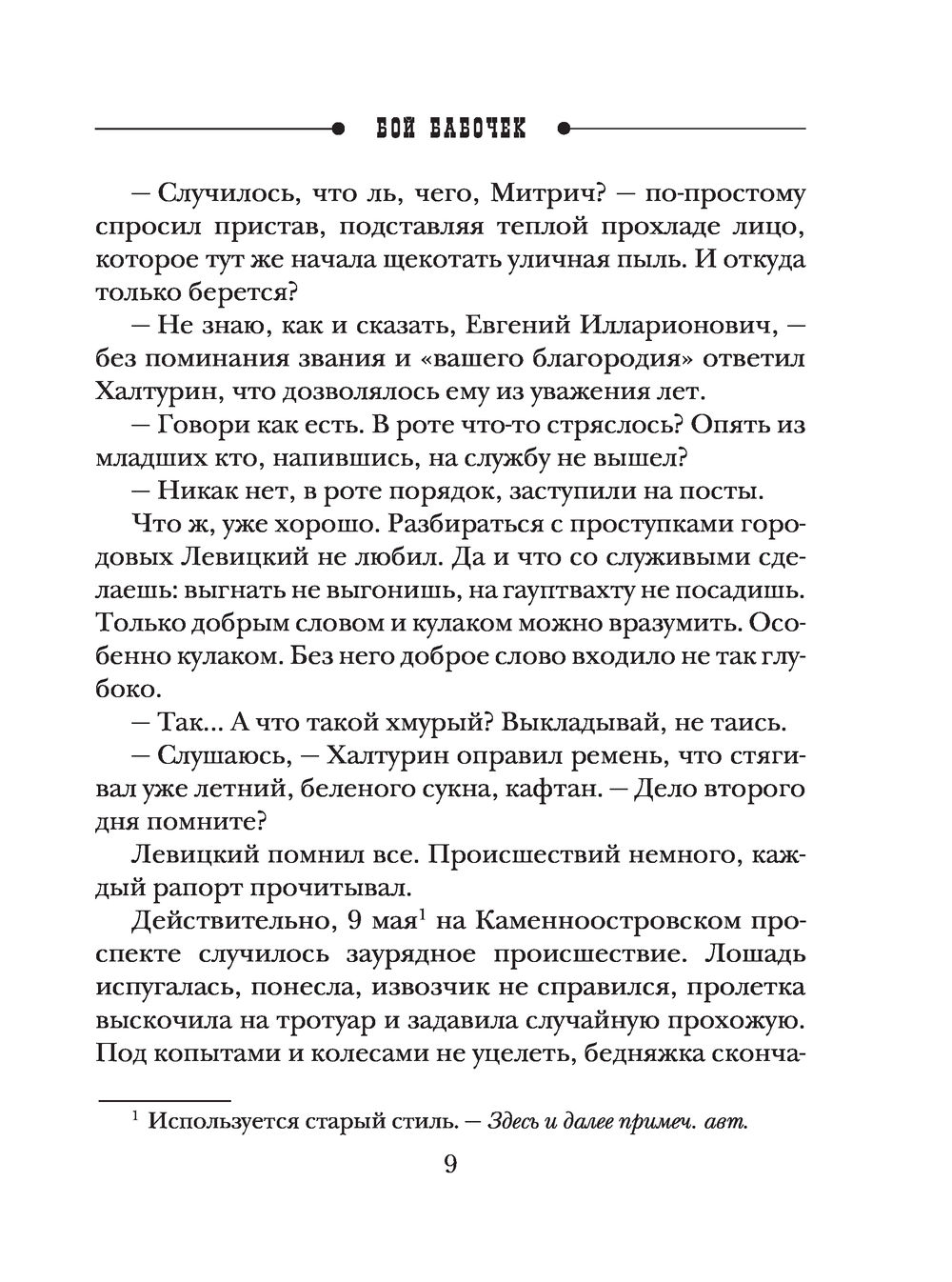Август 1898 года. Мужчины Петербурга разделились на два лагеря яростных поклонников: их сводят с ума "самая красивая женщина в мире" Лина Кавальери и "королева брильянтов" Каролина Отеро, выступающие в частном театре "Аквариум". Кто же из них лучшая певица: итальянка или испанка? Это должен решить "бой бабочек", которого ожидает столица. Внезапно над звездами нависает опасность: в театре находят труп неизвестной, а по ночам слышится голос призрака. Хватит ли сил чиновнику сыскной полиции Родиону Ванзарову спасти их? Или "Аквариум" станет смертельной ловушкой? Изнанка театрального мира, неприглядная, жестокая и полная интриг. Как распутать клубок тайн, если на кону человеческие жизни и жизнь самого Ванзарова?