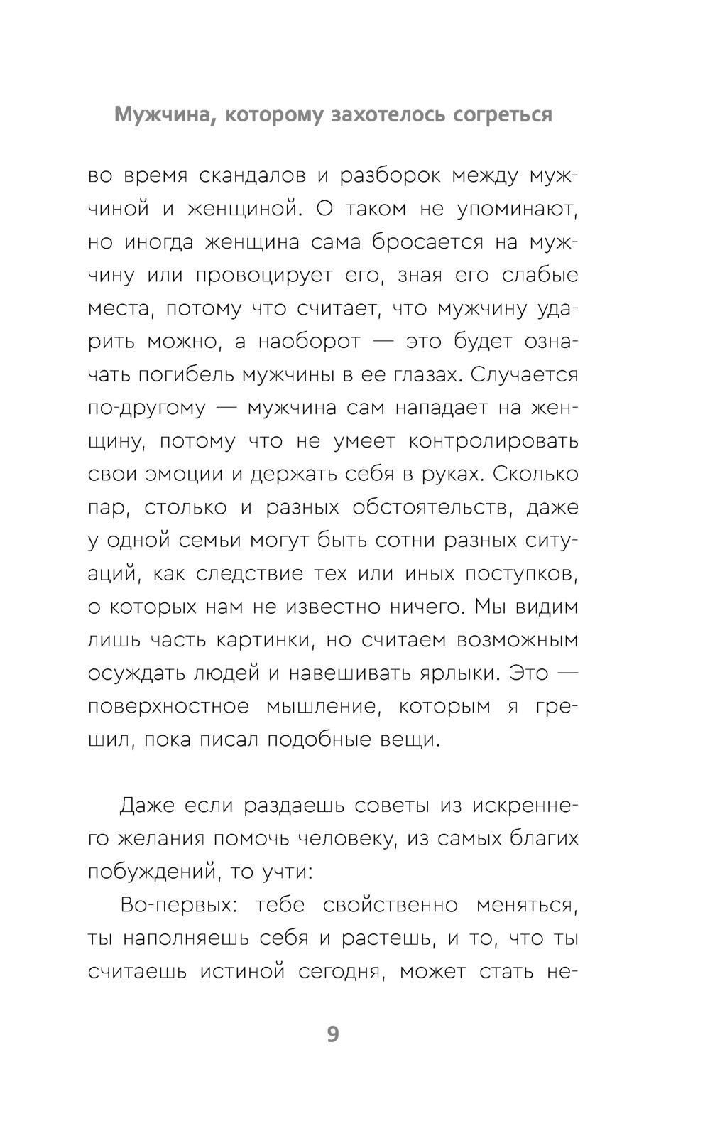 Автор создал прямолинейную, местами жесткую книгу о том, как двое взрослых людей замерзли, будучи вместе. Но помните: тепло есть и оно ждет, чтобы отогреть холодные души.