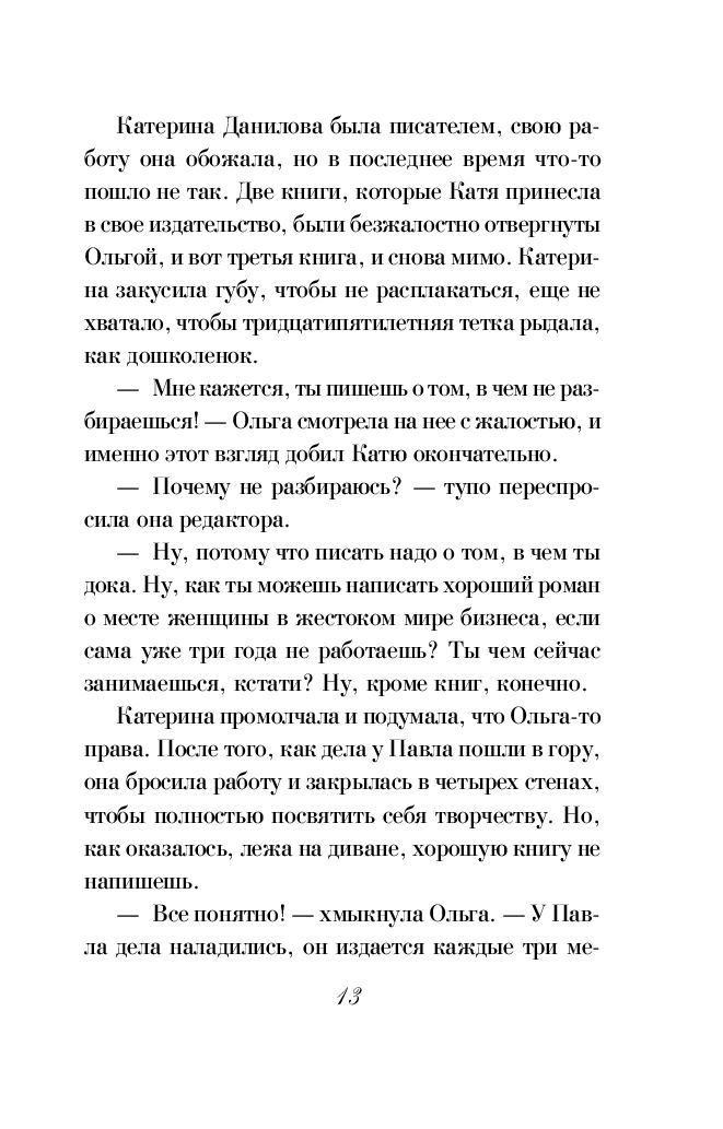 Катя Данилова, некогда успешный автор женских романов, оказалась в тупике – она исписалась, муж требует сменить творчество на материнство, лучшая подруга упрекает в серости... Чтобы набраться новых впечатлений, Катя резко меняет свою жизнь: переселяется в рабочее общежитие и устраивается комплектовщицей на склад. Острых ощущений она получает в избытке, в короткий срок превратившись из благополучной дамы в замученную тяжелой жизнью тетку, притом соучастницу убийства, жертву шантажа и обманутую супругу. Чтобы вынырнуть из кошмара, в который она попала по собственной воле, Кате придется распутать непростой сюжет настоящего детектива...