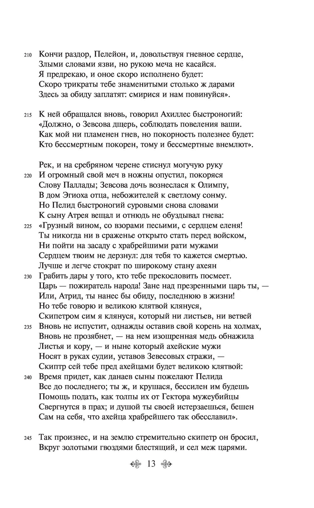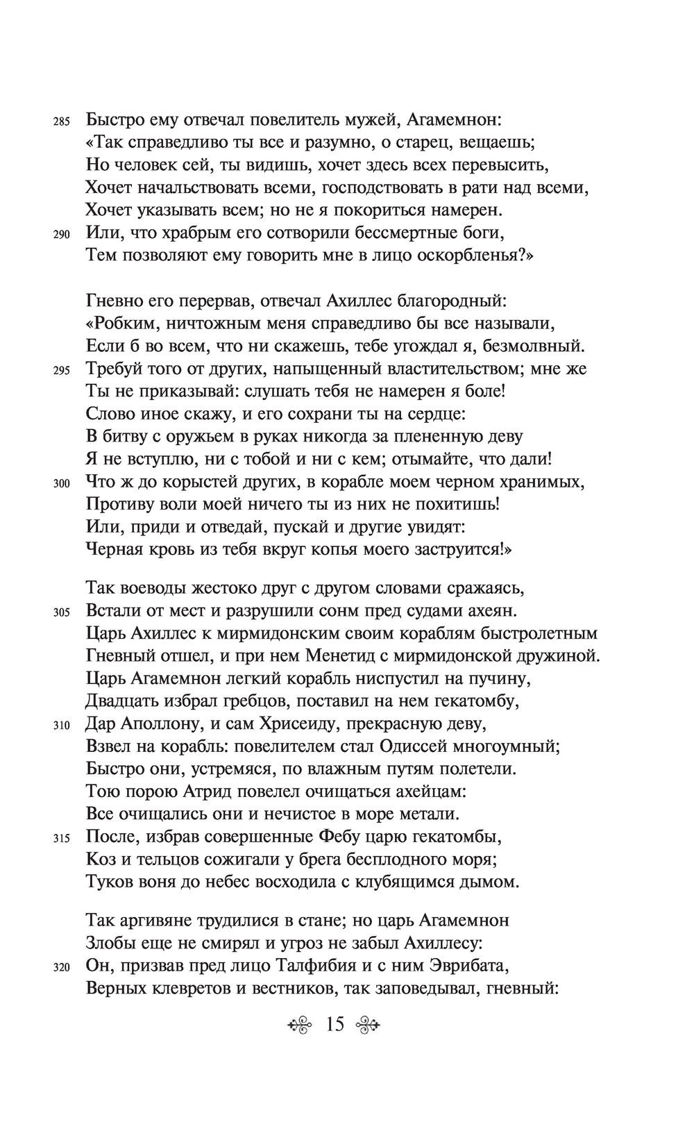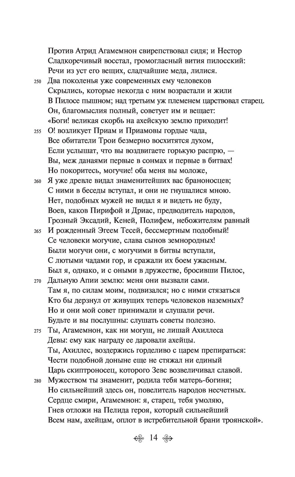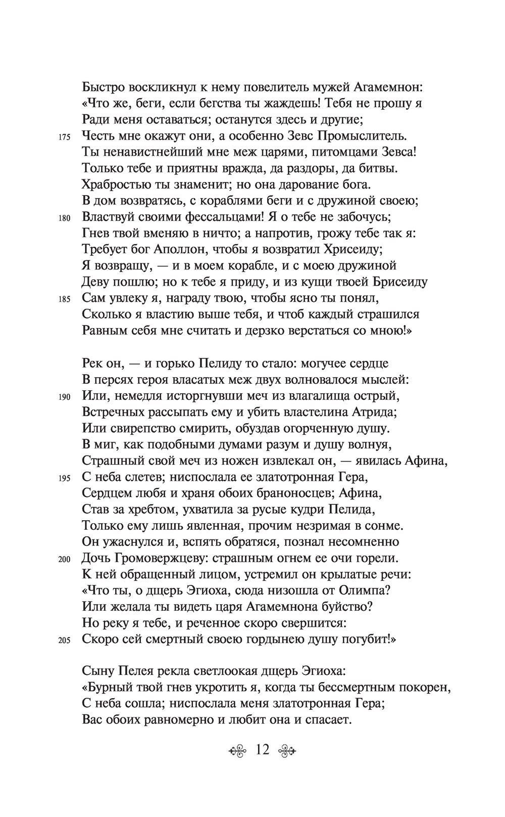Гомер заложил начала мировой литературы, все многообразие ее жанров. Его "Илиада" и "Одиссея" – не только памятники античной культуры, но и богатейший источник сведений о мире и человеческой натуре. "Илиада" повествует об одном из поворотных моментов истории Древней Греции, десятилетней осаде Трои, войне, начатой во имя любви. Здесь тесно переплелись предания о богах и героях, мифы и подлинные события. Текст всемирно известной поэмы, стоящей у истоков европейской литературной традиции, дан в знаменитом переводе Н.И.Гнедича, сумевшего передать "простоту, силу и важное спокойствие" языка Гомера.