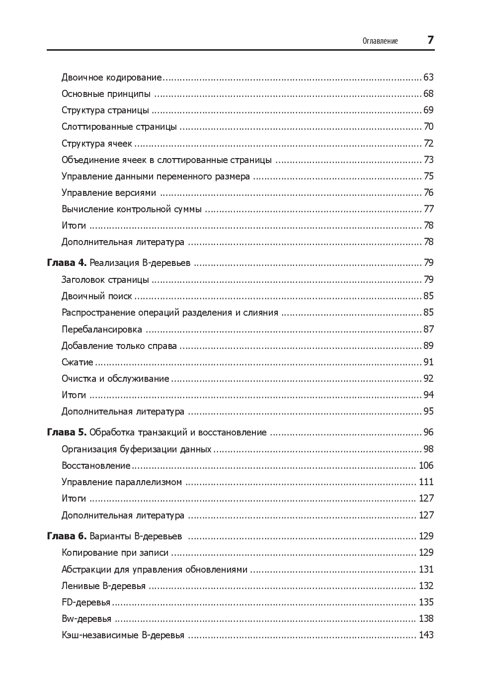 Книга отличная, но мне кажется выбрано не самое удачное название. Первая половина книги описывает структуры данных, которые применяются в современных базах данных. Все эти B'-tree, LSM-tree и прочее. При этом довольно хорошо углубляясь в тематику их оптимизаций для применения в системах с конкурентным доступом. Вторая часть уже посвящена распределенным алгоритмам, вроде консенсуса, gossip, распределенным транзакциям. Книга абстрактно рассматривает все это, но ссылается на существующие решения. Ссылок в книге предостаточно, и это тот редкий случай, когда только из-за систематизации всех этих исследований можно почитать. По сути это и есть дайджест современных баз данных с точки зрения алгоритмов. Без рецептов как настраивать очередную Apache *DB. Искал медь, нашел золото. Давно хотел понять как БД устроены под капотом, хотя искал тематику второй части книги.