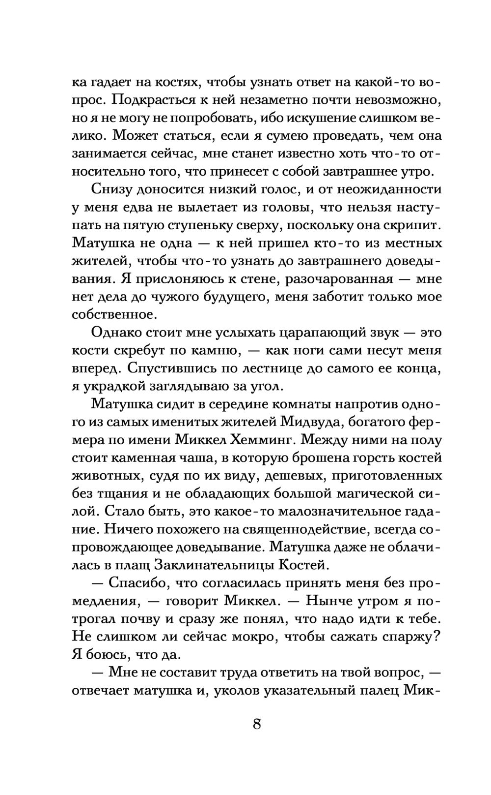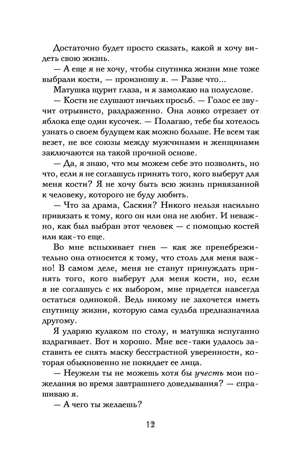 В мире Саскии кости – это источник особой силы. Они могут предсказывать будущее, рассказывать о прошлом, шептать тайны настоящего. Провидцы и гадатели, читающие по костям, есть в каждой деревне. Их уважают и одновременно боятся. Однажды и Саскии придется принять древний дар и стать одним из них, но она противится зову костей, потому что знает – случится что-то непоправимое. Зло рядом, она чувствует его.