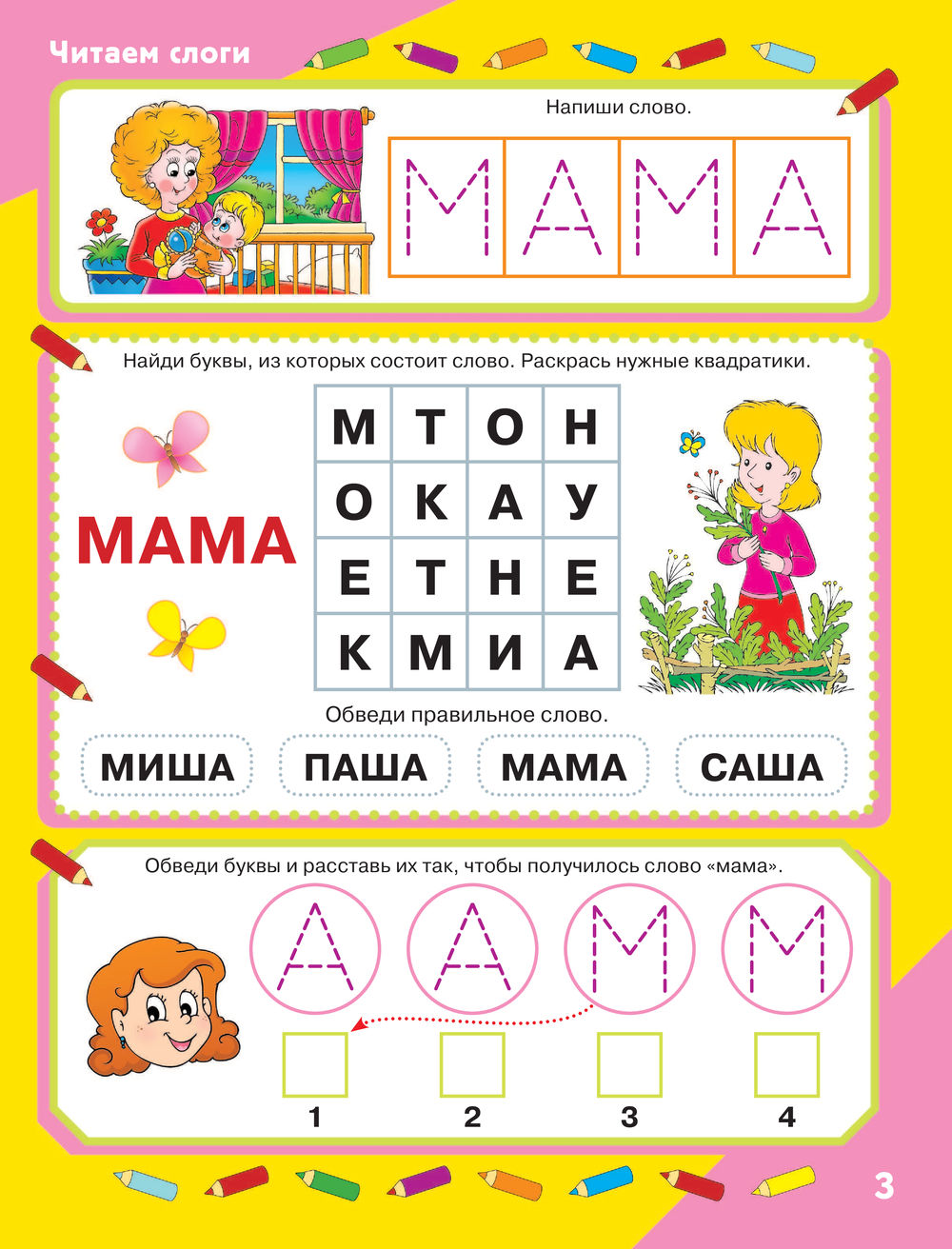 Занятие по этой книге поможет дошкольнику овладеть первыми навыками чтения, научиться читать слоги и простые слова. Помимо привычных заданий (прописывание слогов и слов), здесь вы найдете интерактивные упражнения: складывание слогов из пластилина, повторение ритмических рядов слогов, а также упражнения на развитие слухового и зрительного внимания.