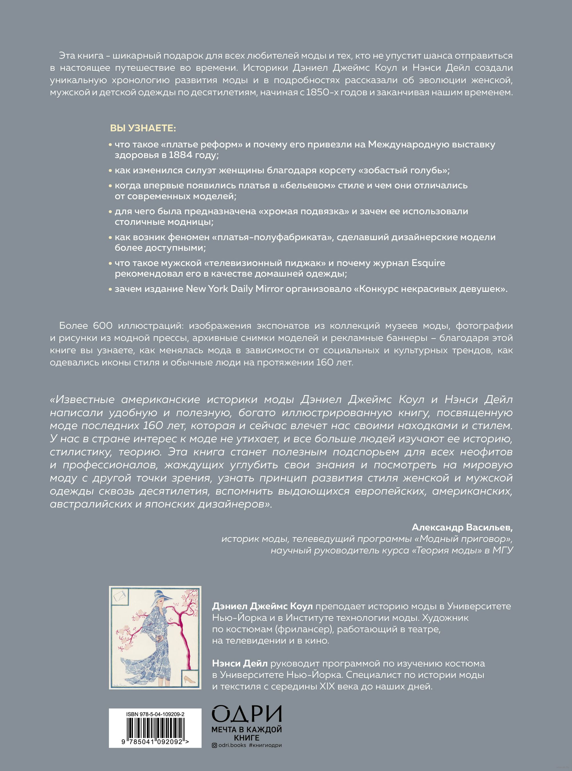 Если вы искренне любите моду и хотите знать о ней все, то эта книга станет для вас бесценным подарком. Авторитетные историки Дэниел Джеймс Коул и Нэнси Дейл провели колоссальную работу: собрали сотни уникальных фактов и более 600 архивных иллюстраций, рассказав об одежде в контексте времени, социума, искусства и новых технологий – десятилетие за десятилетием. Начиная с 1850-х годов, когда балом правили кринолин и пышные юбки, до сегодняшних "лейблов" и спорт-шика.