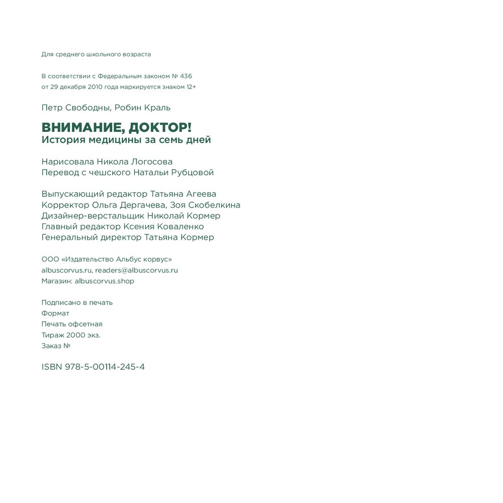 Книга "Внимание, доктор!" - это не сюжетное повествование и не энциклопедия. Ее автор стремится лишь указать читателю на поворотные моменты в истории медицины. В этом ему помогают герои книги - обычная чешская семья. На протяжении семи глав мы вместе с ними узнаем, какие проблемы со здоровьем испытывали люди с древнейших времен до наших дней, знакомимся с революционны ми способами их решения, найденными по большей части уже в XIX и XX веках.