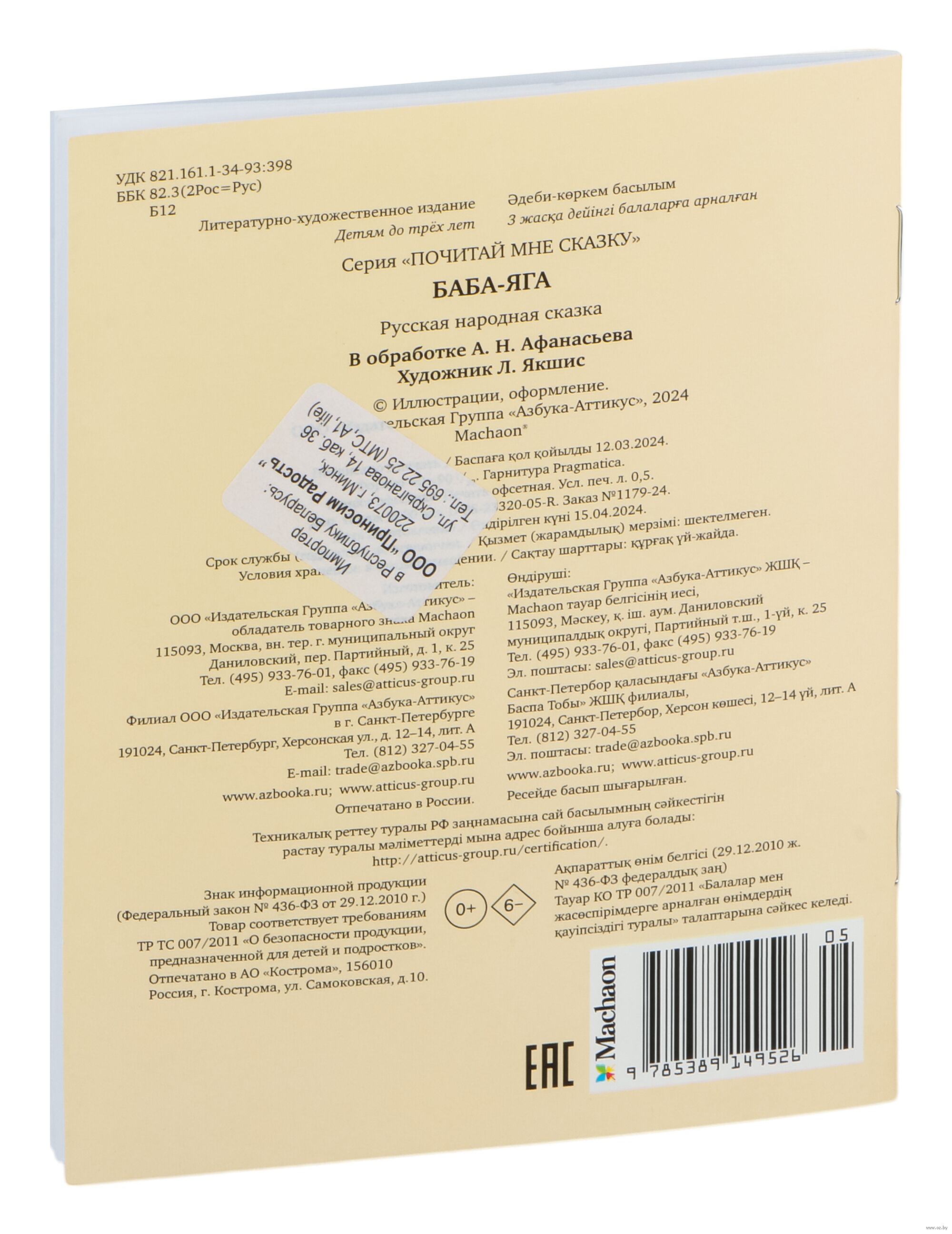 | Изготовитель | ЗАО "Издательская группа "Махаон". РФ, г. Москва, 2-й Хорошевский пр-д, 7/1 |
