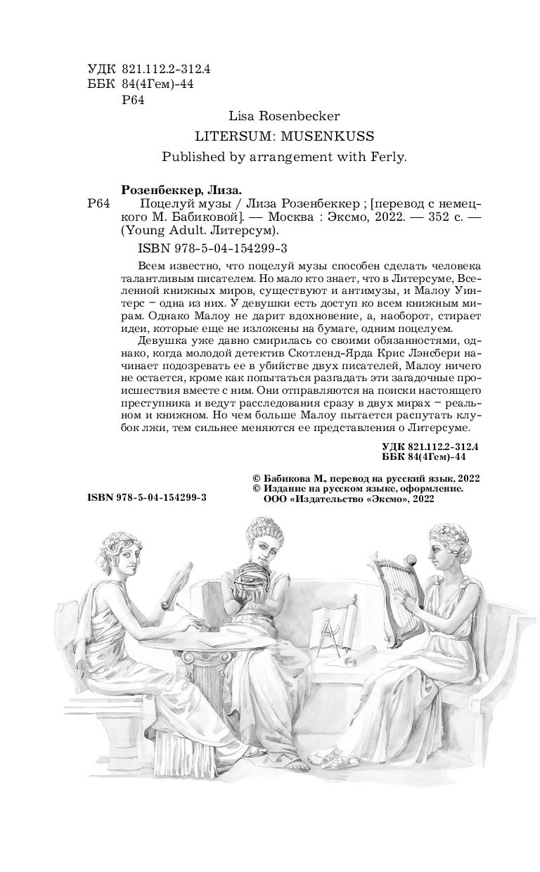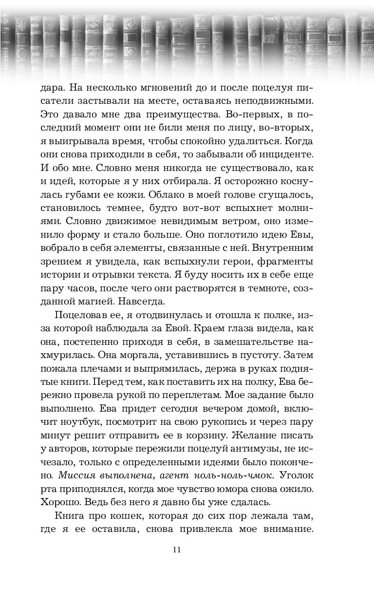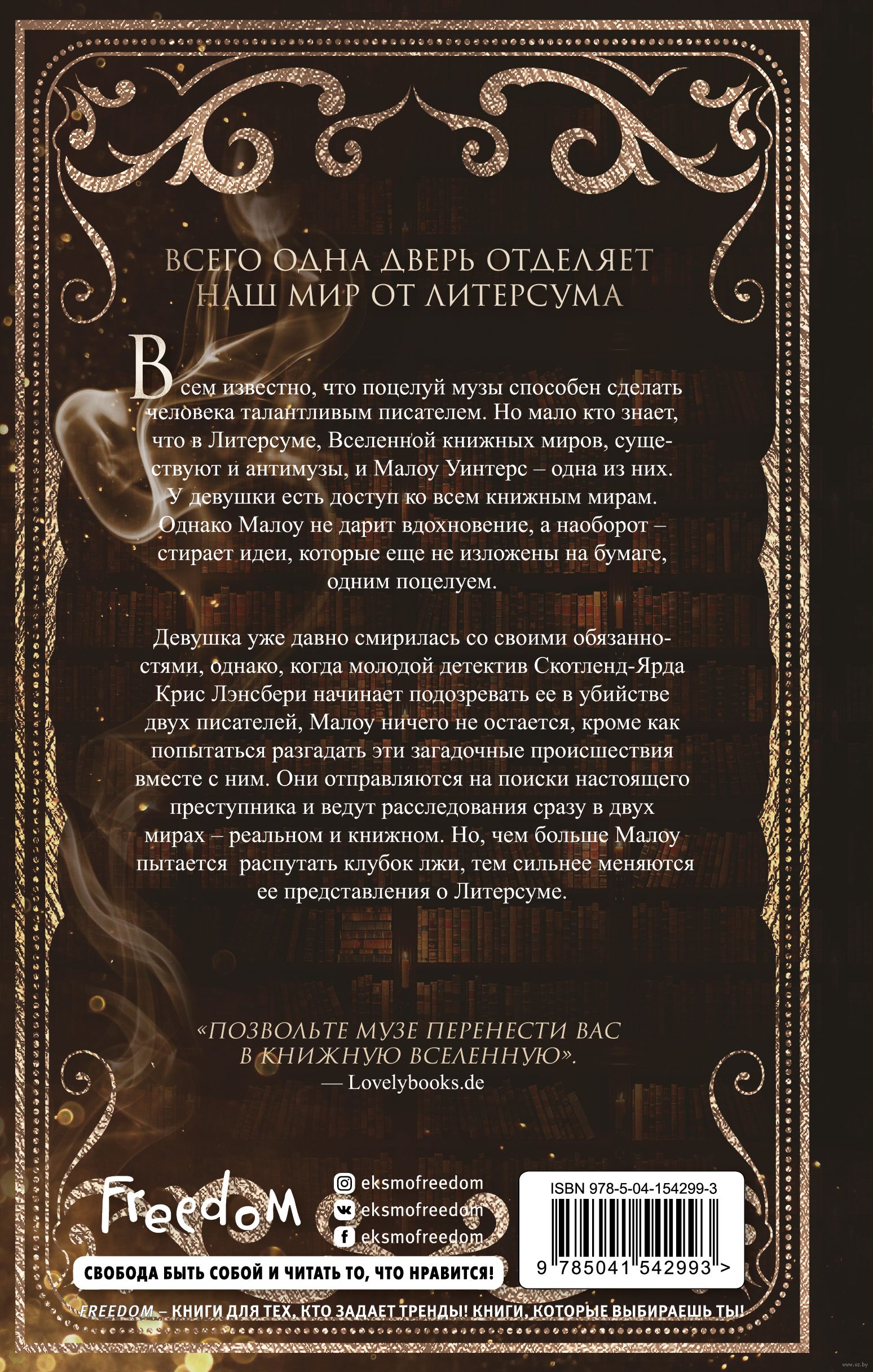 Всем известно, что поцелуй музы способен сделать человека талантливым писателем. Но мало кто знает, что в Литерсуме, Вселенной книжных миров, существуют и антимузы, и Малоу Уинтерс – одна из них. У девушки есть доступ ко всем книжным мирам. Однако Малоу не дарит вдохновение, а наоборот стирает идеи, которые еще не изложены на бумаге, одним поцелуем.