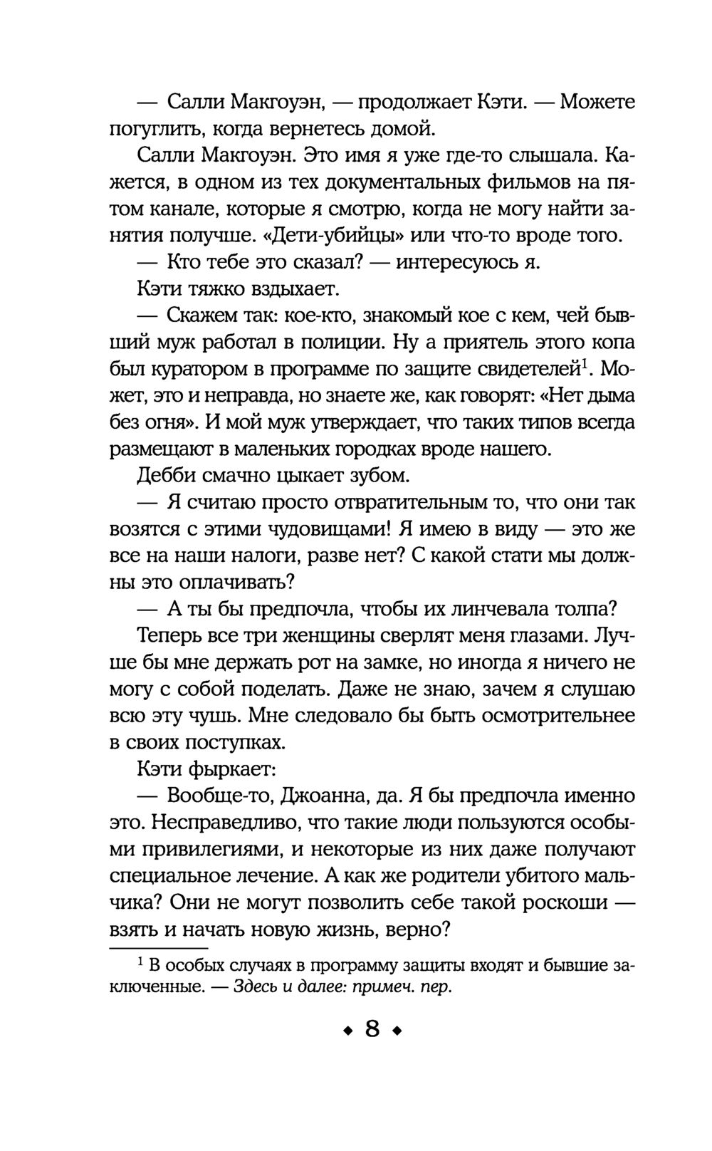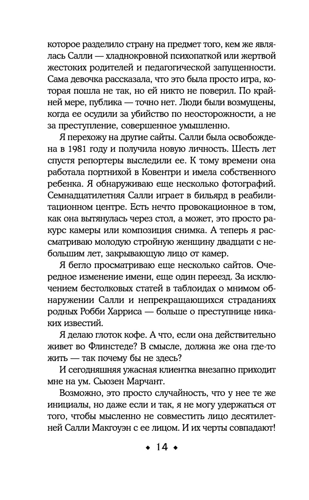Поначалу это всего лишь сплетня из тех, какими вечно обмениваются скучающие мамочки на детской площадке, – будто бы в их тихом, сонном приморском городке живет под чужим именем Салли Макгоуэн, много лет назад заколовшая ножом маленького мальчика. Никто толком ничего не знает. Но...