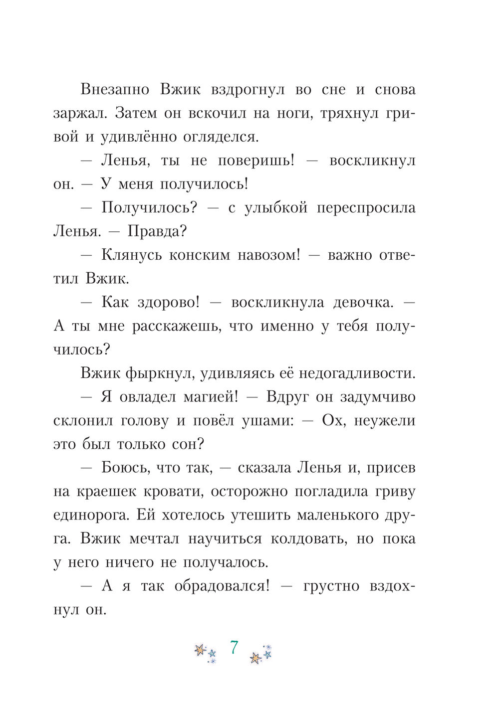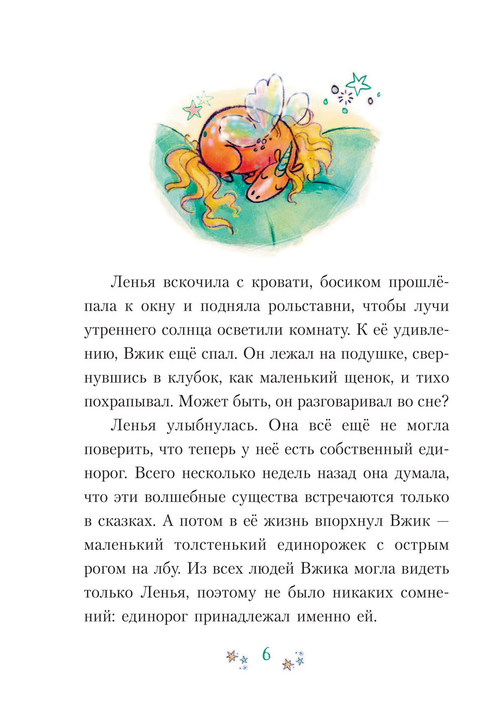 Ленья очень любит Вжика, своего единорога, пусть тот и не умеет творить чудеса. Девочка верит: немного тренировок – и Вжик обязательно овладеет магией! И она обязательно ему в этом поможет! Однако Ленья не учла, что ей и самой может понадобиться помощь. Она поспорила с врединой Шарлоттой, что выступит на танцевальном конкурсе и выиграет главный приз. Но проблема в том, что она совершенно не умеет танцевать! Как же теперь быть? Её спасёт только чудо! К счастью, у неё есть единорог, который не прочь взять уроки волшебства… КРУПНЫЙ ШРИФТ И МНОГО КАРТИНОК! ЧИТАТЬ – ЭТО ВЕСЕЛО!