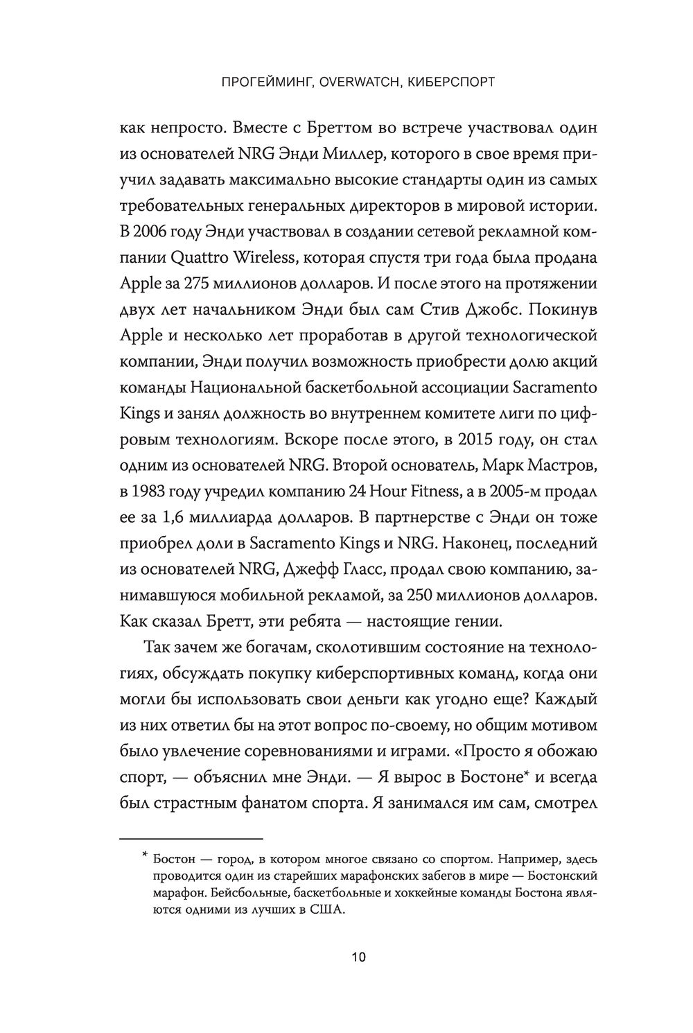 Добро пожаловать в мир компьютерных игр, где борьба идет за большие деньги. Действующие лица здесь – подростки-геймеры, миллиардеры, владеющие спортивными командами, и знаменитые предприниматели: все они стремятся понять и покорить этот быстро развивающийся мир развлечений будущего. Книга переносит читателя в центр киберспортивной революции, давая возможность погрузиться в жизни игроков и "агентов влияния" игрового мира. Это ироничное и полное неожиданных поворотов повествование о подъеме профессионального гейминга и киберспортивной индустрии.