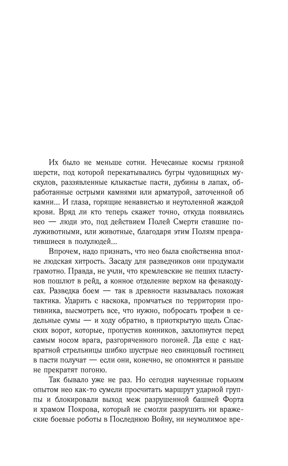 Цивилизация погибла. Все, что осталось от России, – Поля Смерти и горстка людей, обороняющих московский Кремль от биороботов, киборгов, безумных шаманов, и прочей нечисти, порожденной Третьей мировой войной.