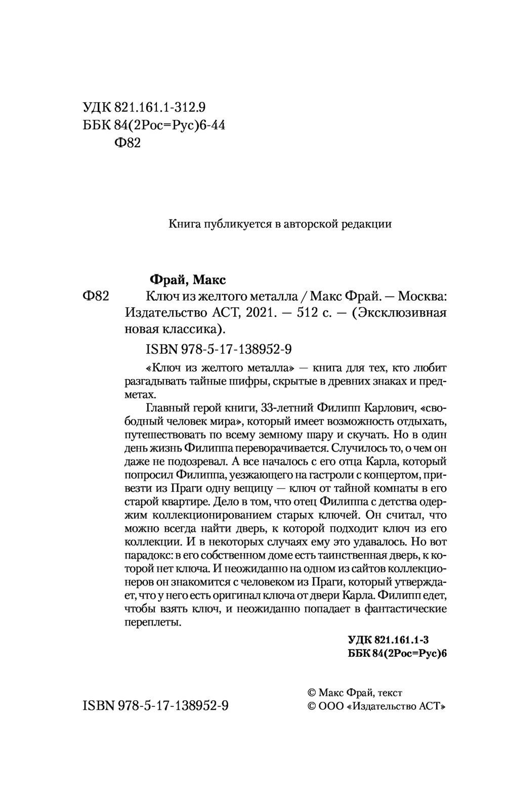 "Ключ из жёлтого металла" – книга для тех, кто любит разгадывать тайные шифры, скрытые в древних знаках и предметах.