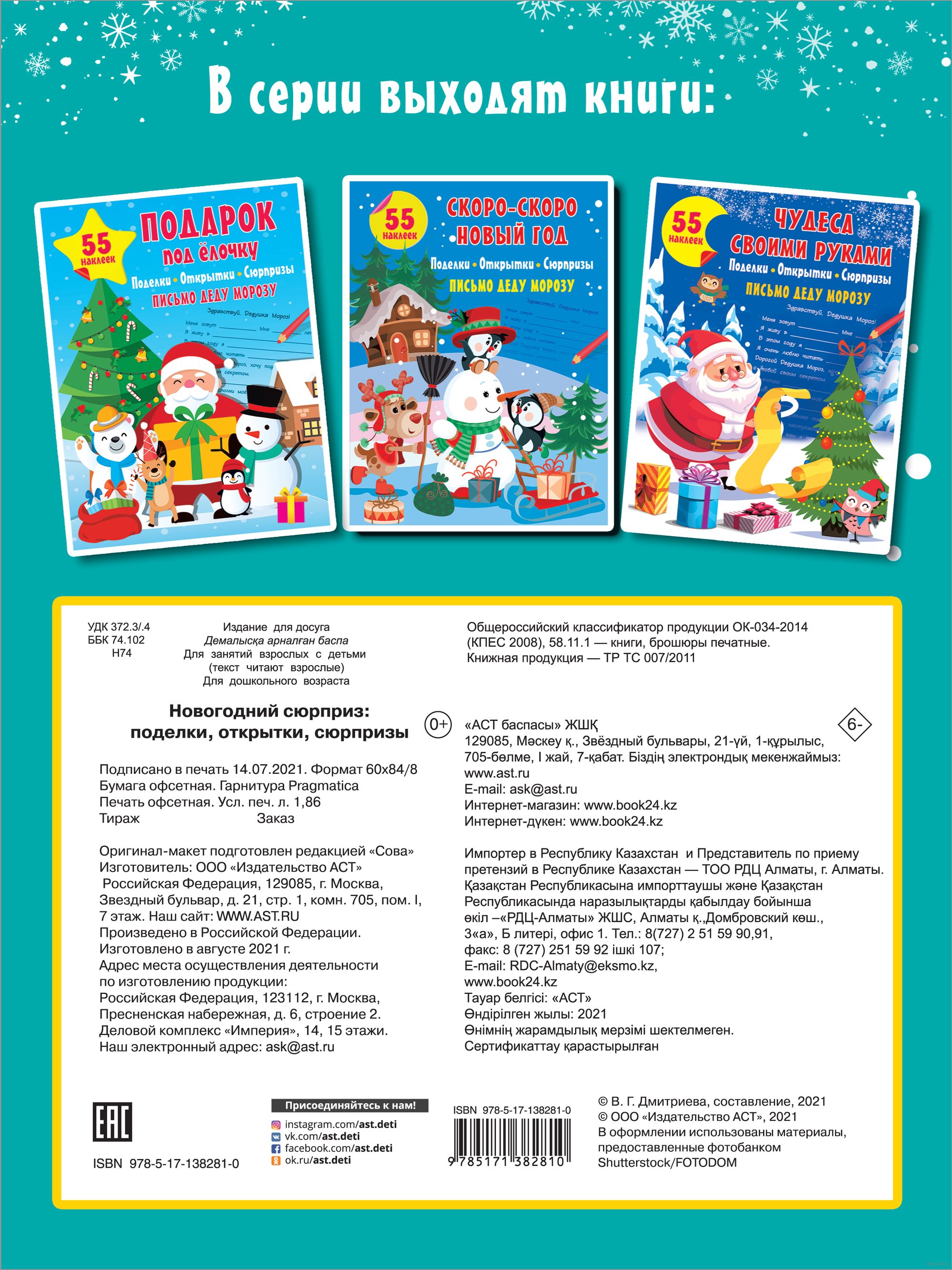 Книжка-мастерилка "Новогодний сюрприз: поделки, открытки, сюрпризы" – это отличная возможность своими руками сделать для родных и друзей праздничные сюрпризы: смастерить гирлянды и ёлочные украшения, придумать необычные новогодние открытки, вырезать снежинки. И конечно, каждый постарается написать письмо Деду Морозу и Снегурочке, расскажет о своих мечтах – и чудо обязательно произойдёт!