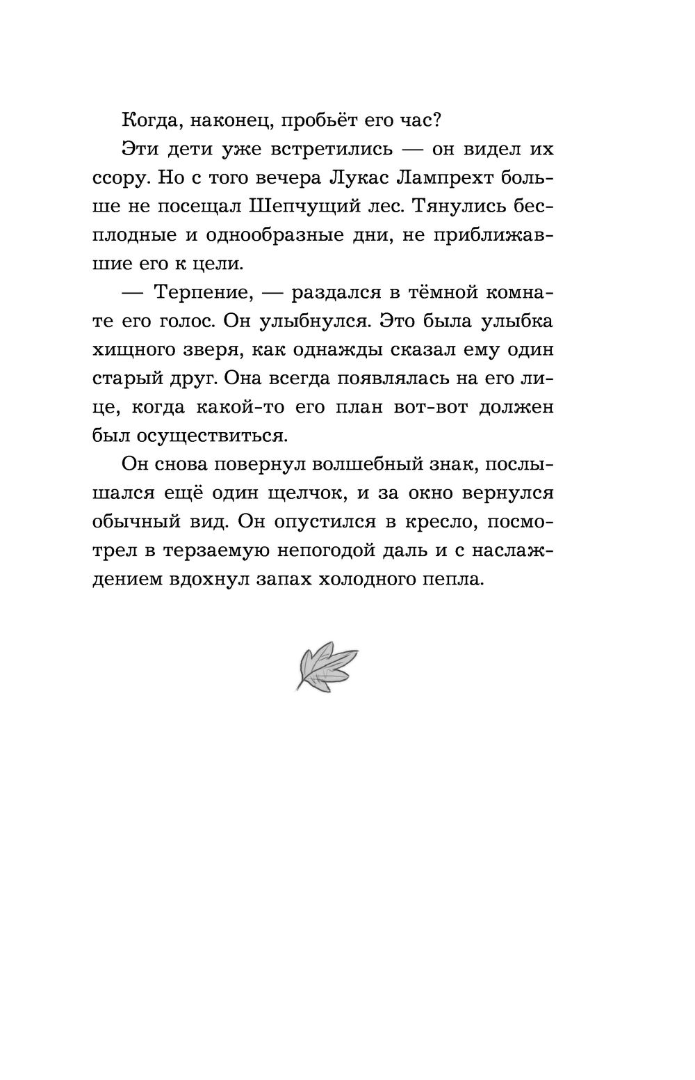 Приключения в Шепчущем лесу продолжаются! Лукас не собирался дружить с Эллой – девочкой, которая утверждает, что исчезнувший профессор, который раньше жил в доме Лукаса, – это её дедушка. Но Элла – та ещё заноза, и вот она уже шагает рядом с Лукасом, Рани, Фелицитой и Пунхи по Шепчущему лесу. Они должны найти профессора и спасти его, а заодно разгадать загадку таинственного Сердца Леса и его силы. И пусть, следуя за подсказками, они должны спуститься в затопленное лавой подземелье, взлететь в город в небесах и нырнуть в озеро, кишащее монстрами, друзья знают – отступать нельзя, какие бы сюрпризы не готовил им полный магии и чудес Шепчущий лес.