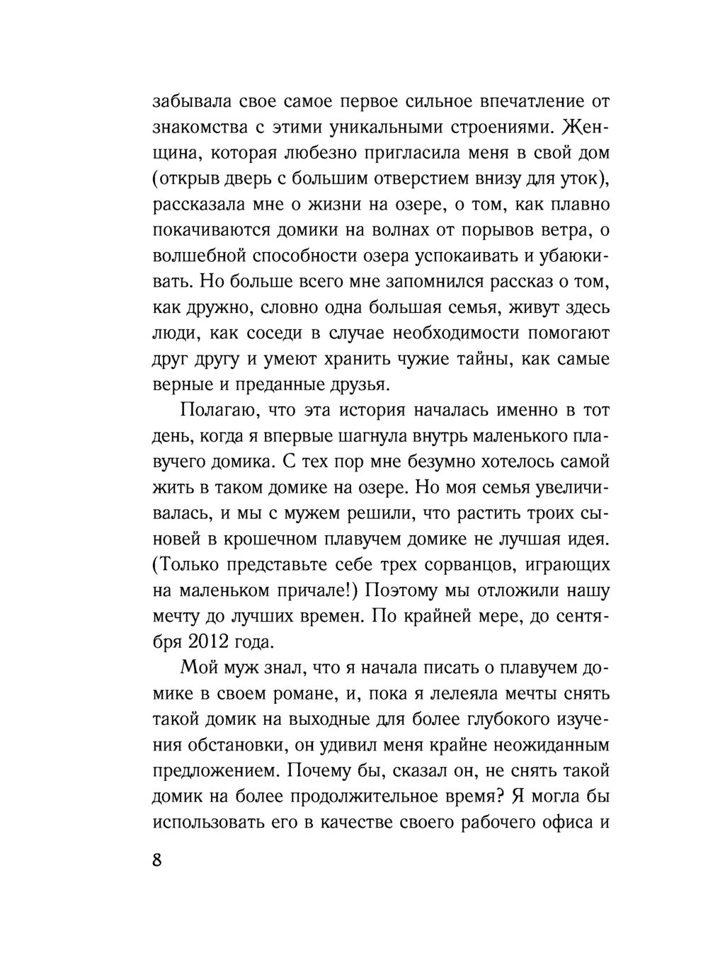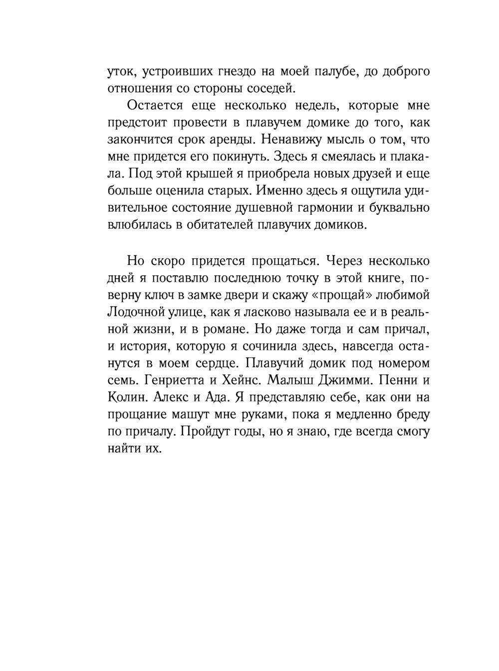 Печальные события в жизни Ады Санторини вынуждают ее уехать на другой конец страны и поселиться в очаровательном плавучем домике на Лодочной улице. Жизнь на озере кажется настоящим приключением, а соседи становятся близкими друзьями. Но однажды Ада находит на чердаке сундук, в котором покоятся свадебное платье, записная книжка и несколько фотографий. Ада рассказывает о своей находке соседу Алексу, и он ее предупреждает: вероятно, сундук принадлежал девушке по имени Пенни, которая когда-то жила в доме Ады. Но Пенни пропала много лет назад, и старожилы Лодочной улицы не любят вспоминать эту историю. Однако вещи многое могут рассказать о своем хозяине. Изучив "сокровища", которые остались от Пенни, Ада понимает, что за ее исчезновением кроется нечто особенное.