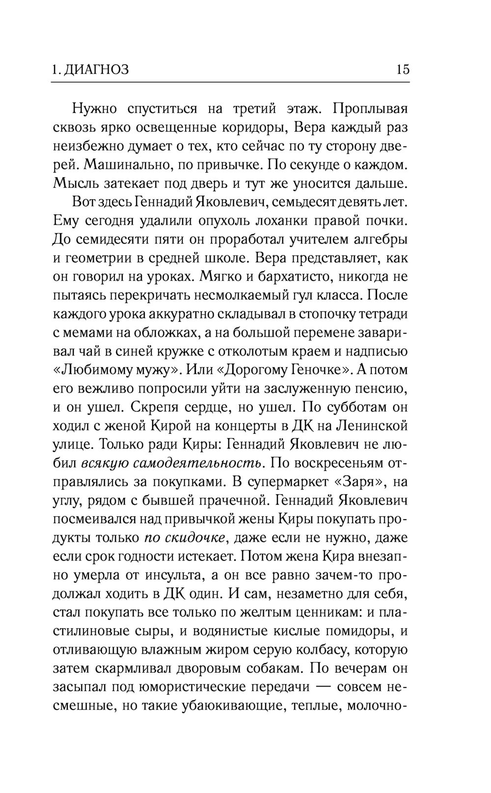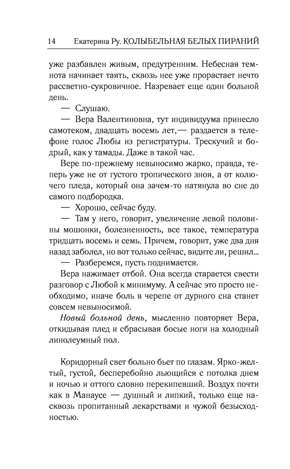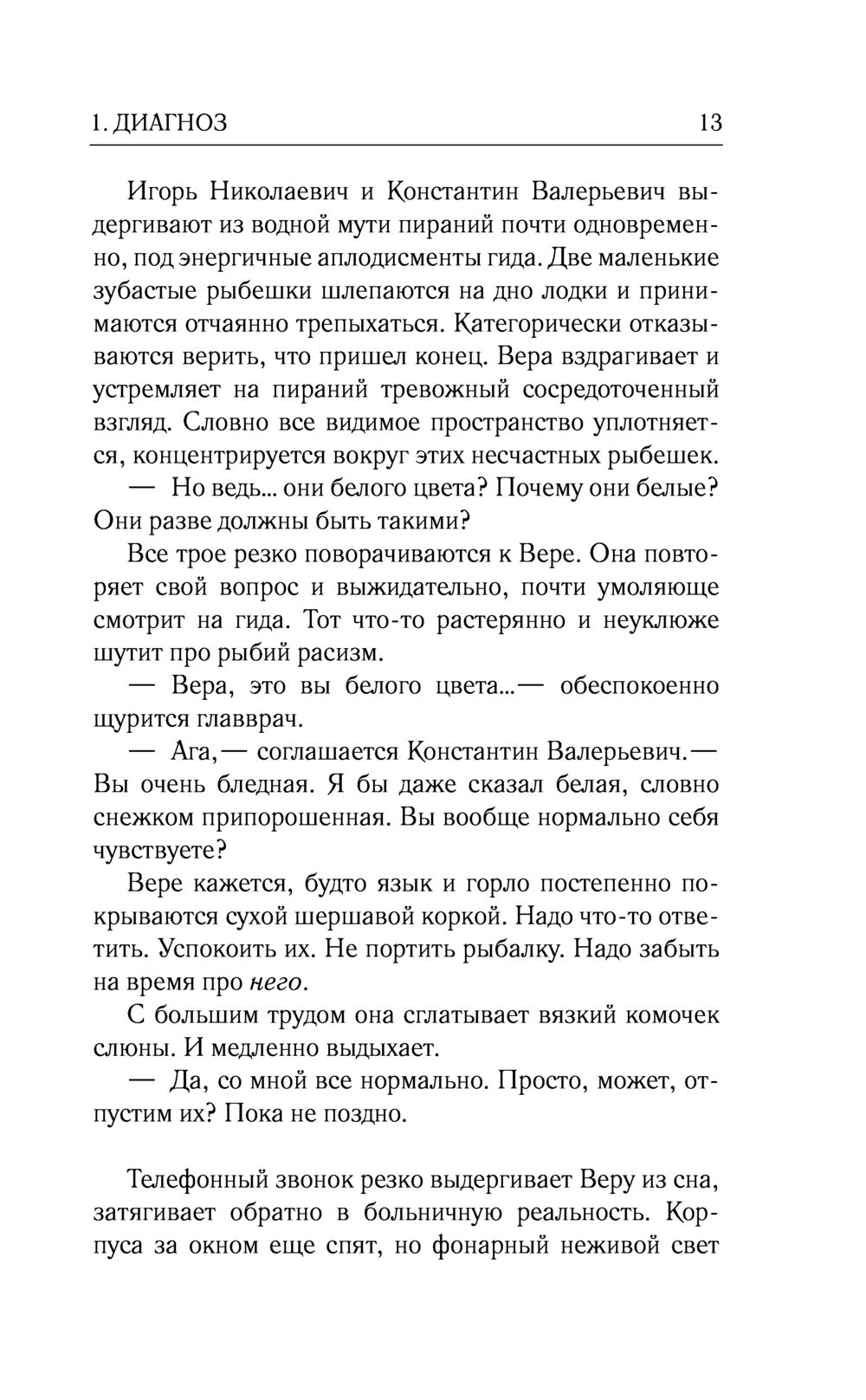 Роман о поиске своего места в реальности. О боли и хрупкости человеческого тела, о страшном и неведомом, что, подобно хищным рыбам, внезапно всплывает из мутной глубины жизни. И об отчаянной попытке это страшное побороть – вопреки логике и законам природы.