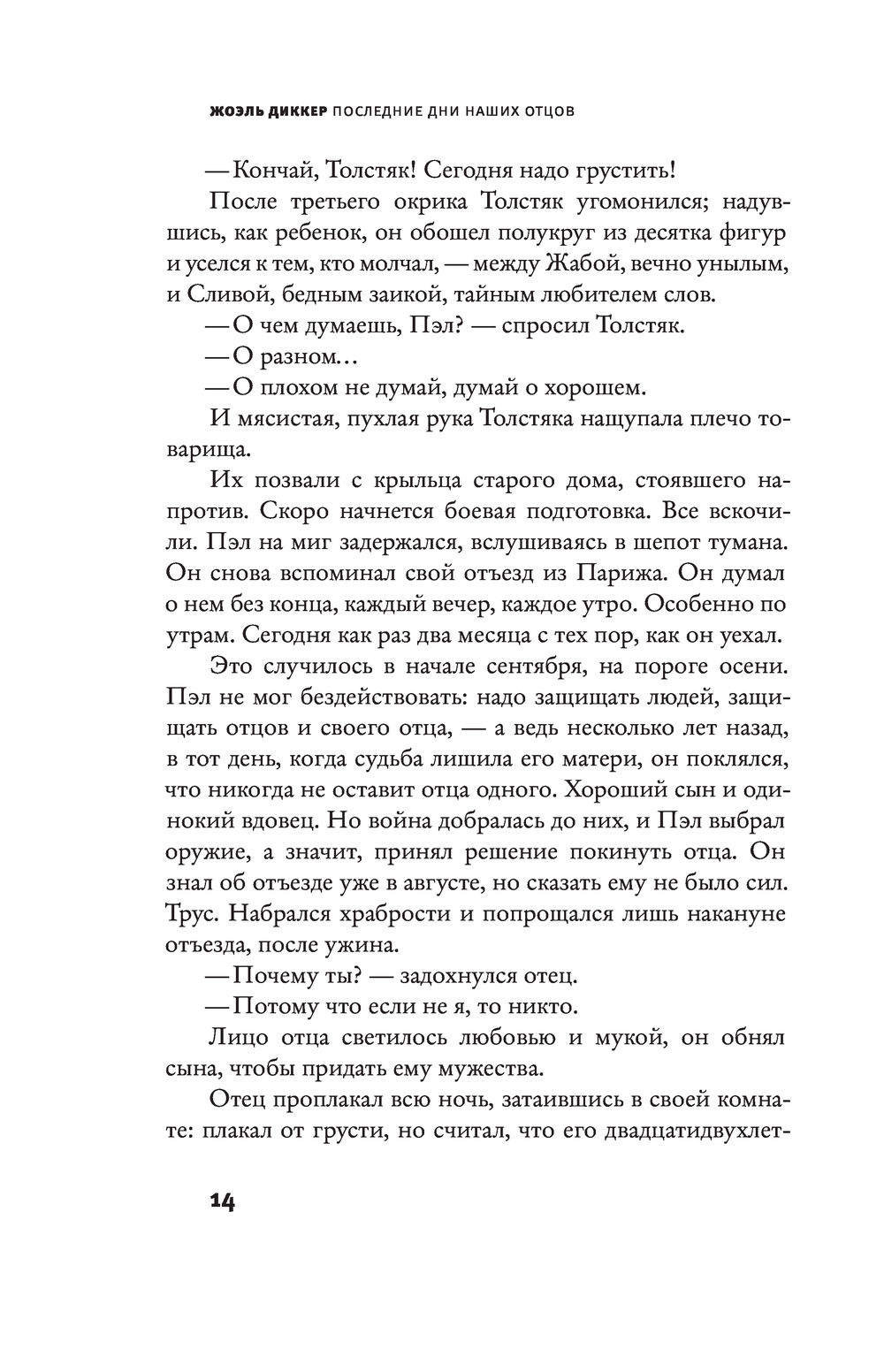 Перед вами роман Жоэля Диккера, который не похож на последующие его всемирно известные произведения. Это и проба пера, и заявка на будущий успех, и опыт создания произведения, основанного на реальных малоизвестных событиях истории Второй мировой войны. Группа добровольцев-французов проходит подготовку в школах британских спецслужб, чтобы затем влиться в ряды Сопротивления. Кроме навыков коммандос, они обретут настоящую дружбу и любовь. Но война не раз заставит их делать мучительный выбор.