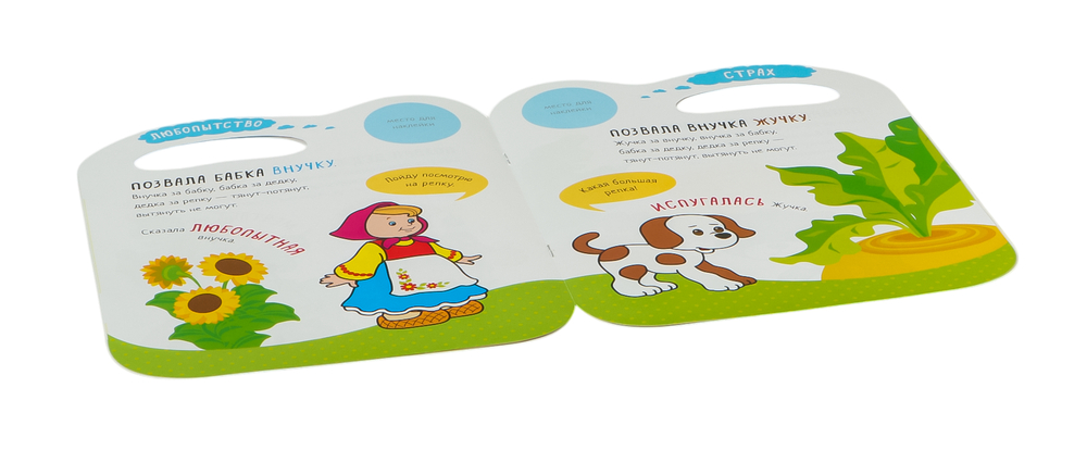 В этом ему поможет любимая русская народная сказка "Репка". Внимательно рассматривая красочные иллюстрации и используя подсказки, малышу предстоит правильно распределить наклейки по страницам. Так он научится распознавать эмоции и настроение сказочных героев, сопереживать им.