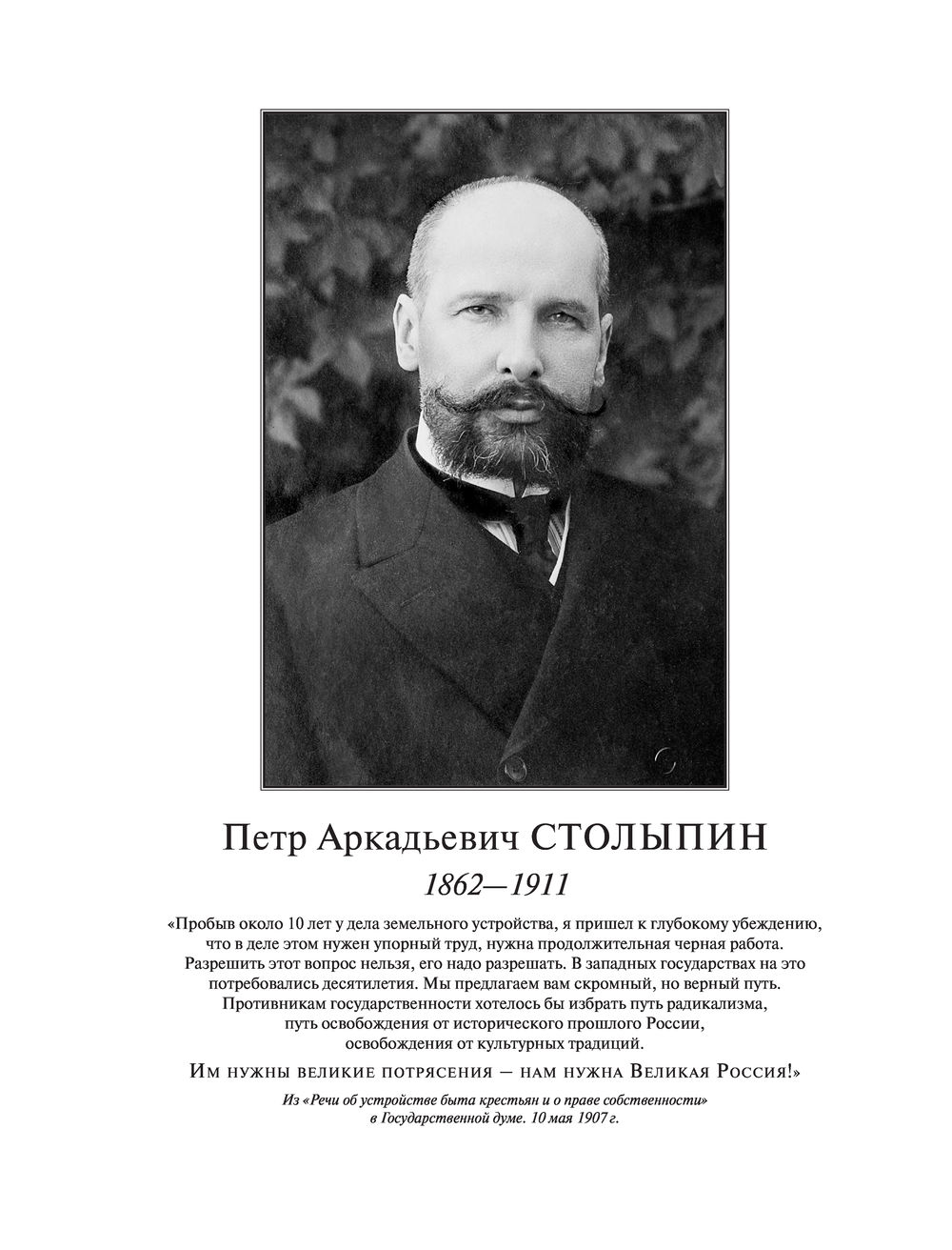 Это юбилейное подарочное издание приурочено к 160-летию этого великого человека. Книга представляет весь спектр документальных материалов о жизни и деятельности Столыпина: его речи, статьи, выступления, законопроекты, а также его переписку с известными государственными деятелями и их воспоминания. Издание богато иллюстрировано, сопровождено биографическими очерками и комментариями.