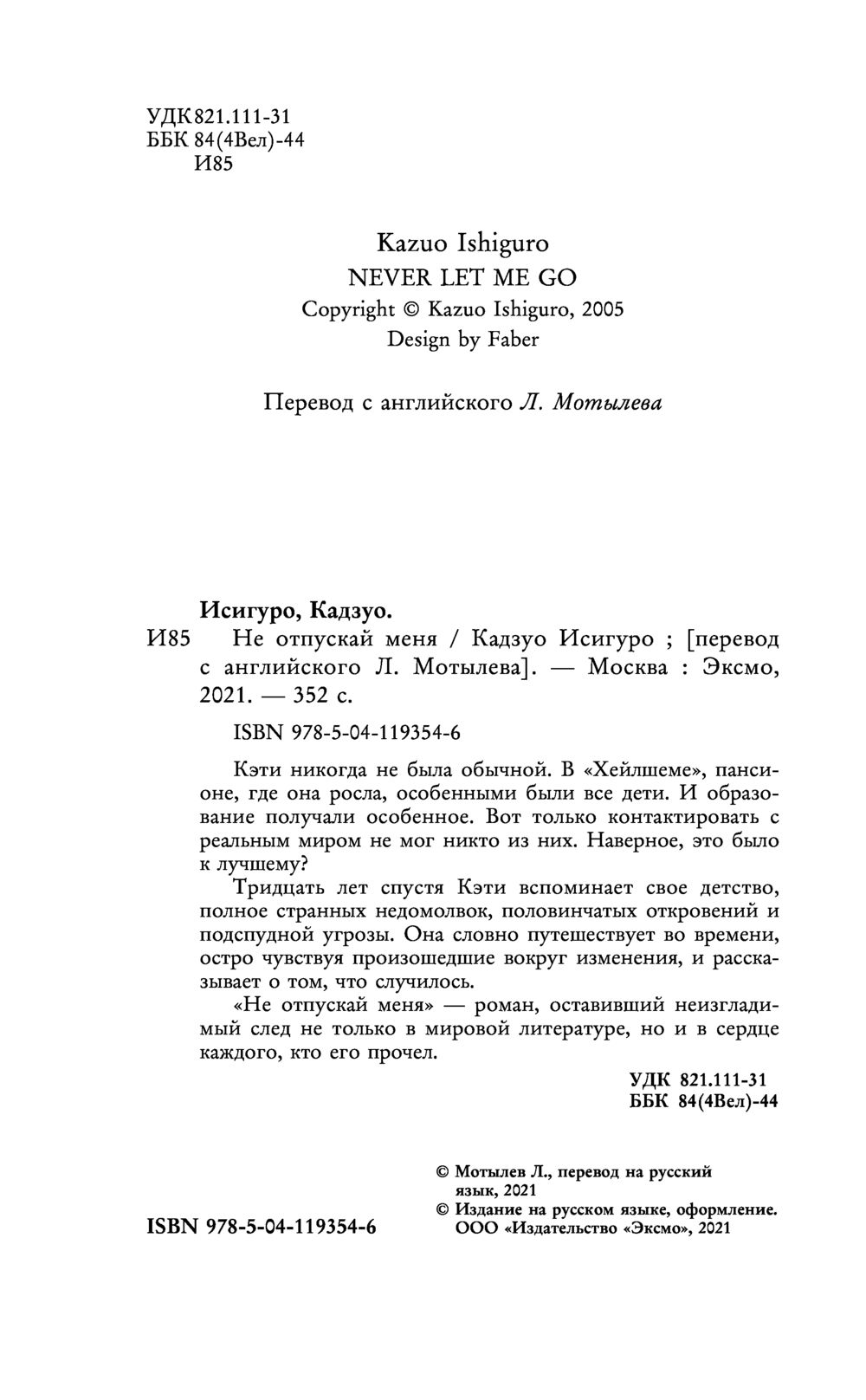 "Не отпускай меня" – роман, оставивший неизгладимый след не только в мировой литературе, но и в сердце каждого, кто его прочел.