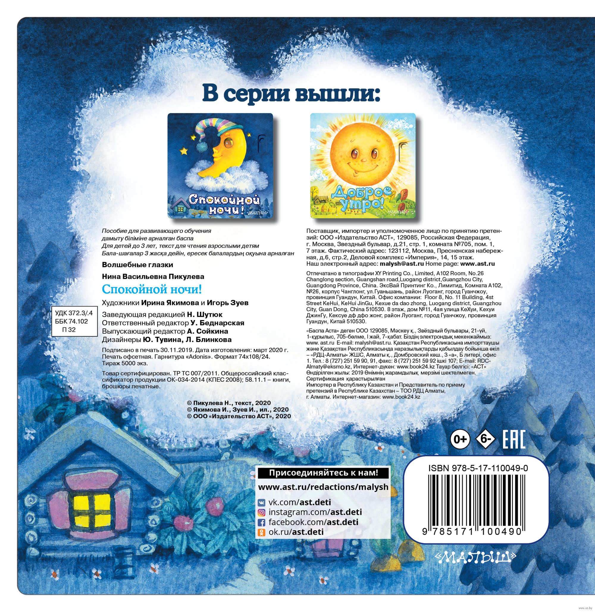 Эта книга расскажет ребенку о том, как готовятся ко сну лесные жители – лиса, волк, мишка, зайка и другие животные. У каждого из них свои полезные привычки, которым они готовы научить малыша. А поможет им в этом подвижный модуль. Стоит только потянуть за него – и вот уже птицы машут крыльями, звери двигают лапами, открывают и закрывают глаза совсем как живые. А веселые стихи Н. В. Пикулевой и красочные иллюстрации художницы И. Якимовой прекрасно дополняют первое знакомство с книгой.