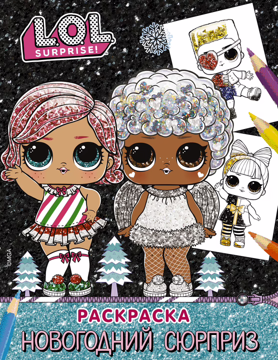Самая праздничная раскраска с куколками L.O.L. Surprise! Зима – время подарков, ярких огней, блеска... и стиля. Добавь цвета самым новогодним куколкам L.O.L. Surprise! Пригодится всё: карандаши, фломастеры, краски, а если получится добавить блёстки, будет просто улёт!