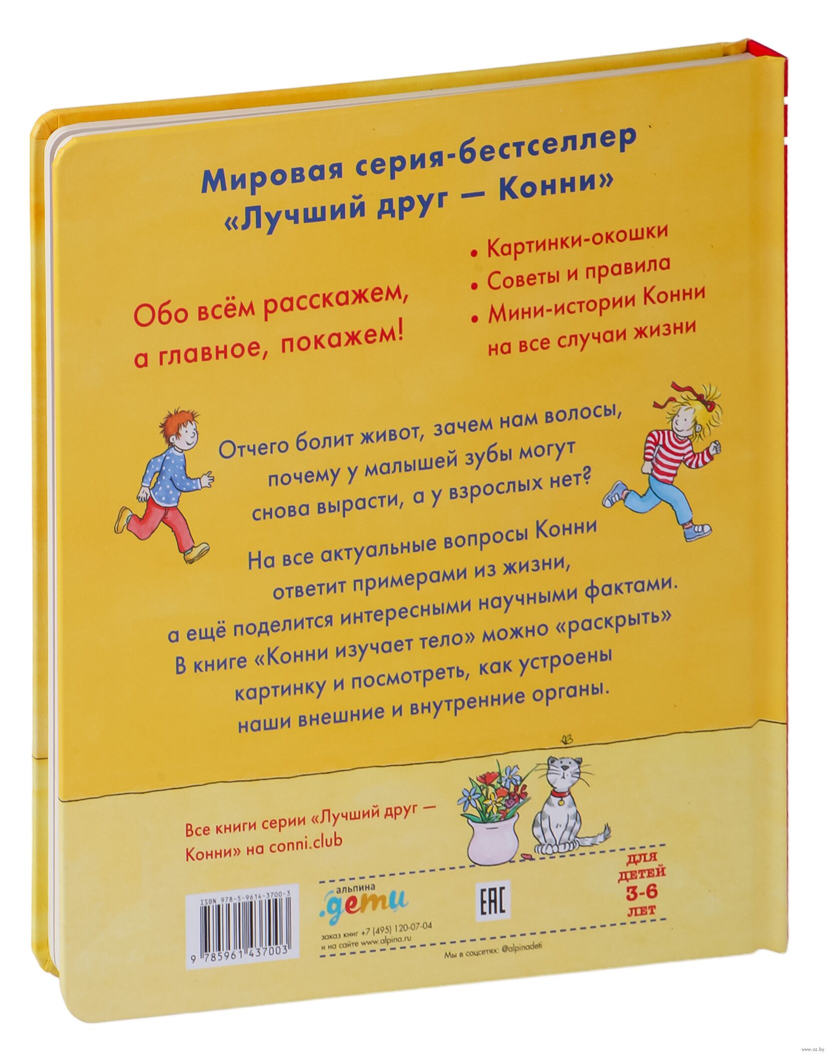 На все заковыристые вопросы ребят Конни ответит примерами из жизни, а ещё поделится интересными научными фактами. В книге много картинок-окошек, которые можно раскрыть и посмотреть, как устроены наши внешние и внутренние органы.