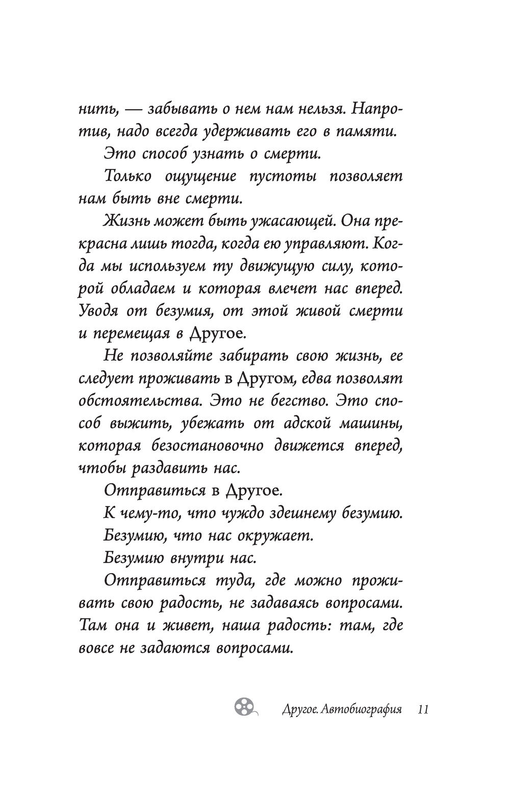 Но так ли хорошо мы его знаем? Не прячется ли за обликом монстра невинный младенец? Новая книга Депардье откроет его для читателя совсем с Другой стороны. С той, о которой читатель даже не подозревал. Это не хроника творчества актера, а размышление о жизни того, кто не устал восхищаться красотой мира, растворяясь в том, что его окружает, тот, кто не устал просто любить.