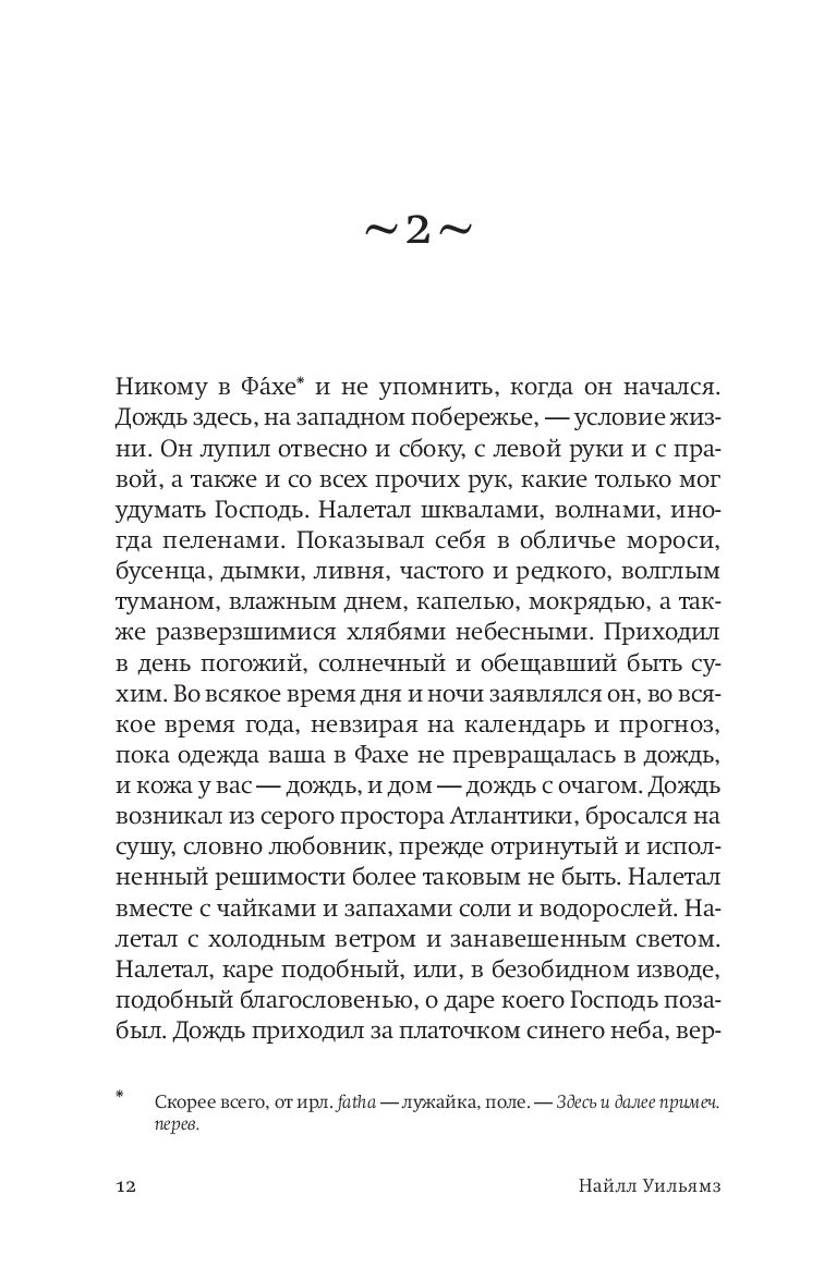 Найлл Уильямз владеет техникой голографического письма, когда целый космос умещается в песчинку и этой же песчинкой выражается. В каждой фразе романа – макрокосм ирландской деревни, которая и есть вселенная, куда вот-вот протянутся электрические провода.