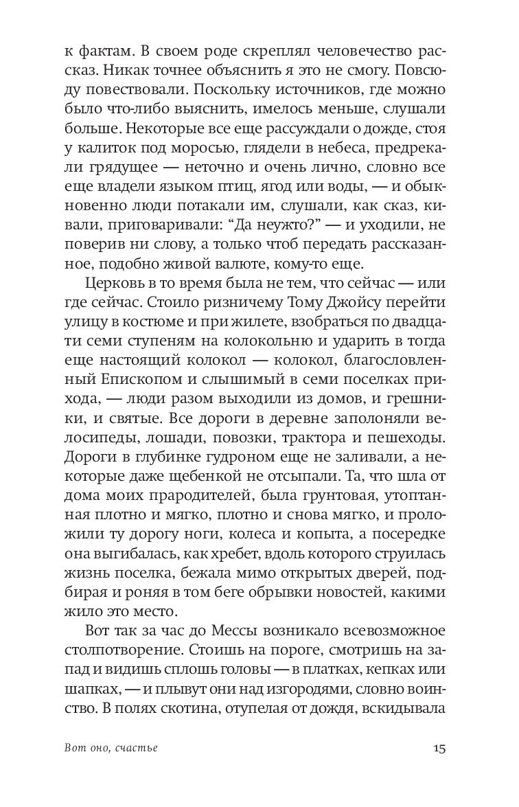 "Вот оно, счастье" – забавный, наблюдательный, иногда смешной и неизменно трогательный оммаж безмятежности, которую можно попробовать создать заново. Это роман о взрослении – и отдельных людей, и самого времени как такового. И, конечно, это роман о силе и власти людских историй.