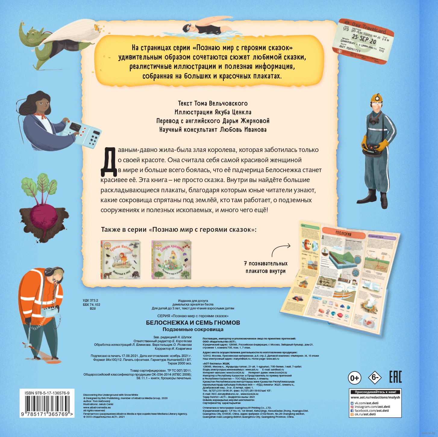 Давным-давно жила-была злая королева, которая заботилась только о своей красоте. Она считала себя самой красивой женщиной в мире и больше всего боялась, что её падчерица Белоснежка станет красивее её. Эта книга – не просто сказка. Внутри вы найдёте большие раскладывающиеся плакаты, благодаря которым юные читатели узнают, какие сокровища спрятаны под землёй, кто там работает, о подземных сооружениях и полезных ископаемых, и много чего ещё!