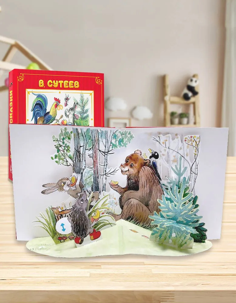Как-то раз собрались звери и стали рассказывать друг другу сказки, а замечательный детский писатель и художник Владимир Григорьевич Сутеев услышал эти истории, записал и нарисовал к ним иллюстрации. Теперь благодаря удивительным объёмным конструкциям эти сказки оживают.