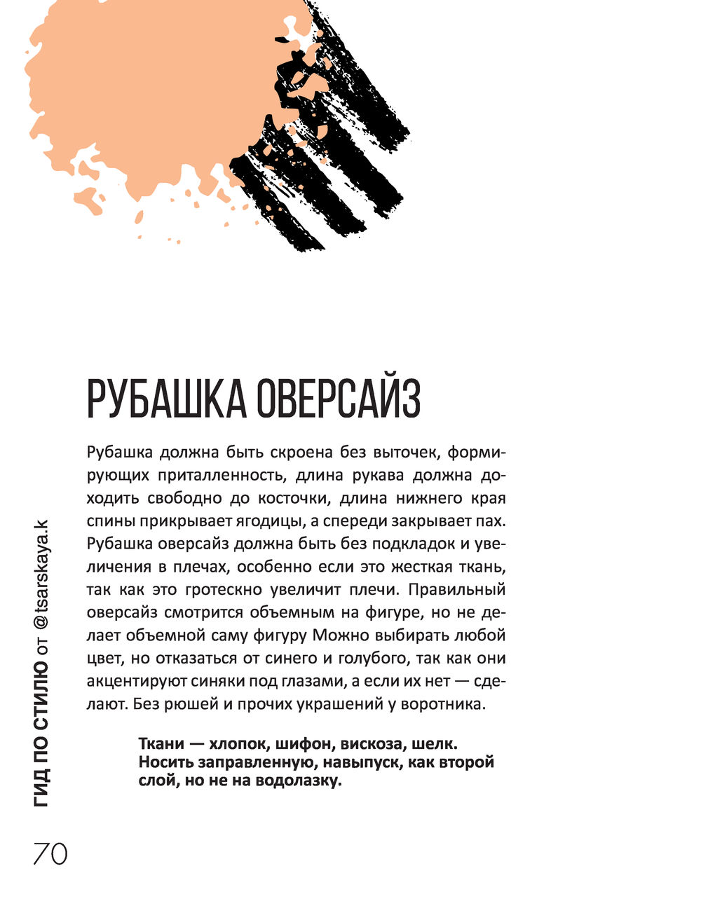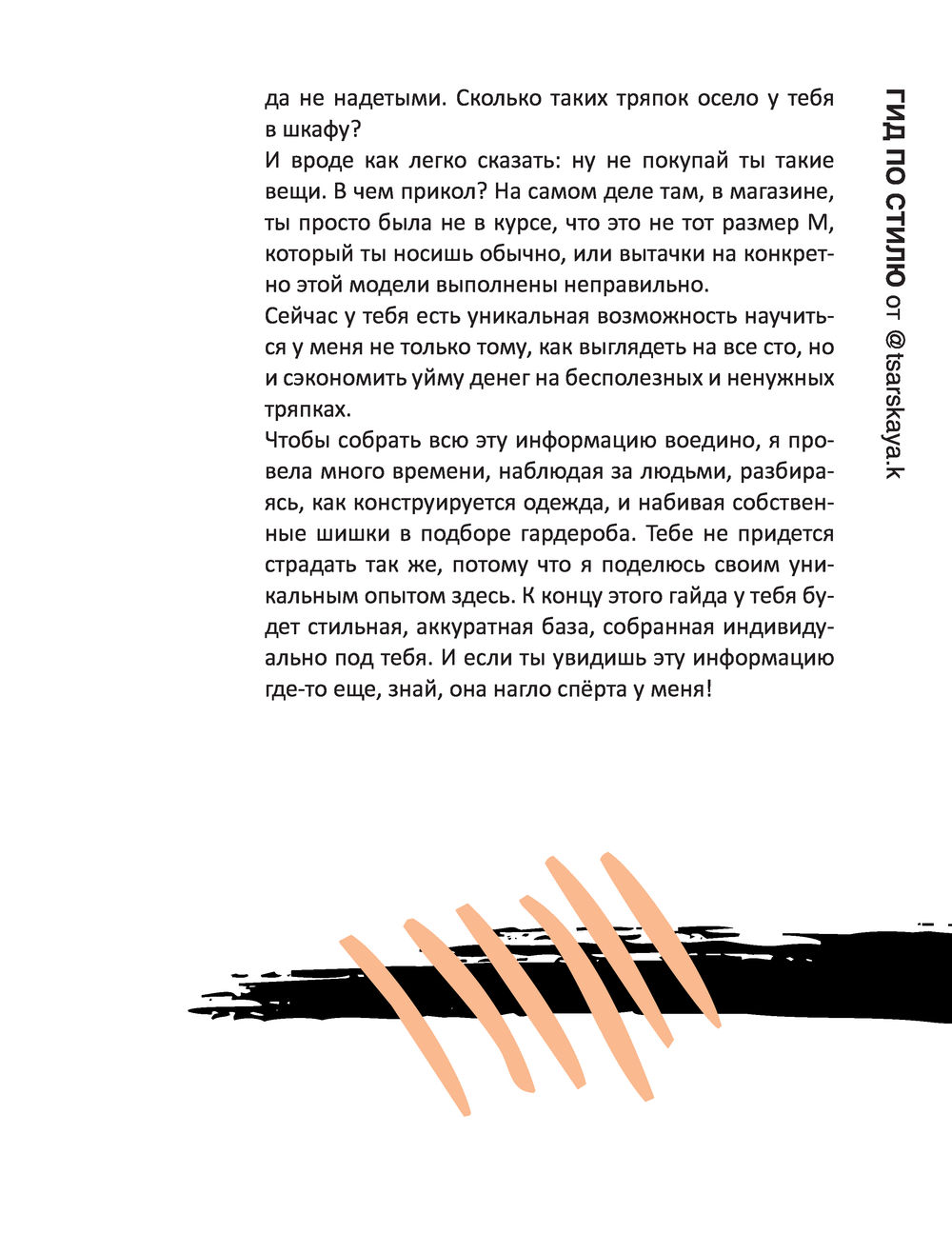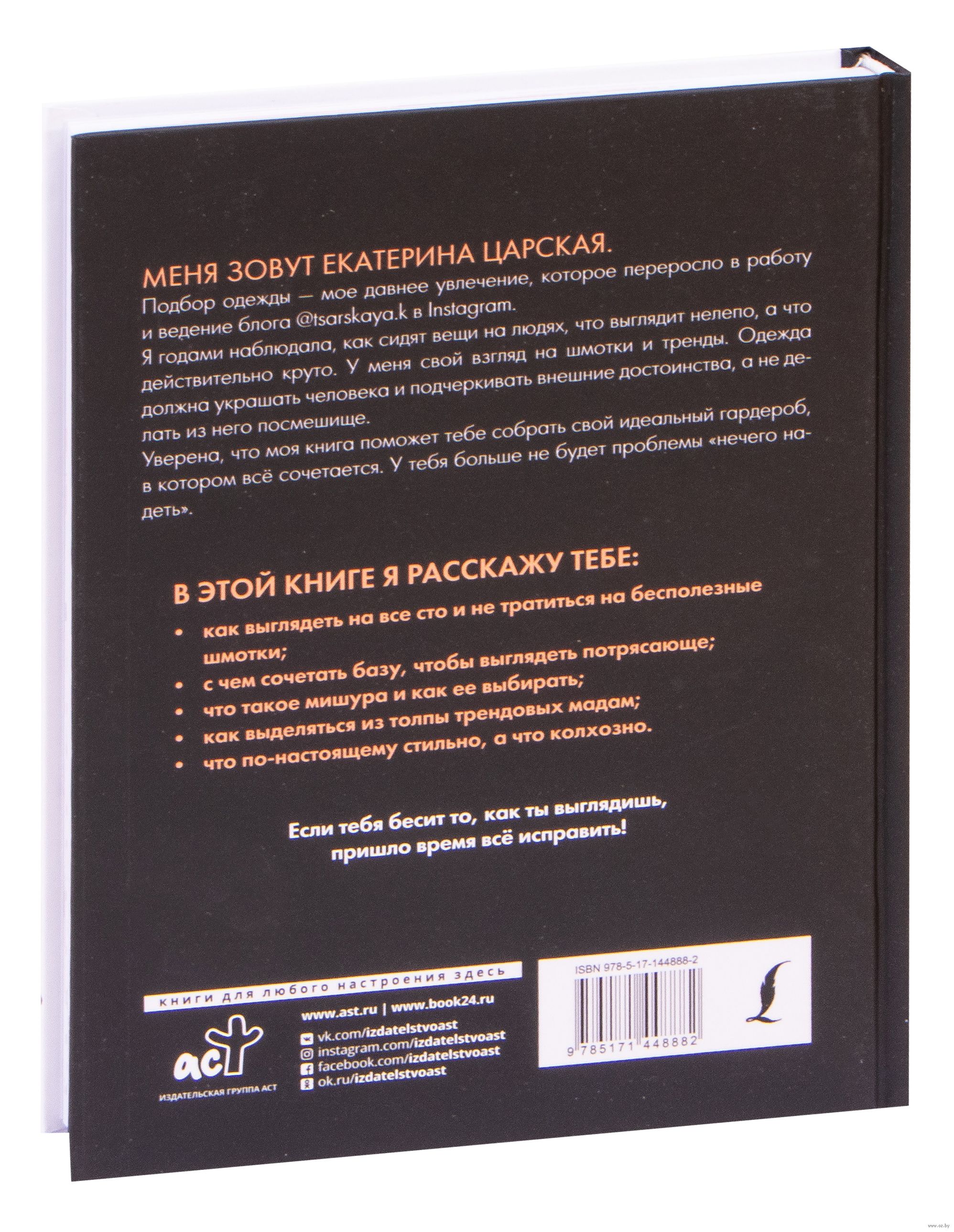 "Гид по стилю от @tsarskaya.k" – это авторский разбор стильного гардероба: как правильно выбирать вещи, что с чем сочетать и как поддерживать свой гардероб актуальным на протяжении сезонов, учитывая веяния современных трендов. С этой книгой вы сможете собрать свой идеальный гардероб, в котором всё сочетается!
