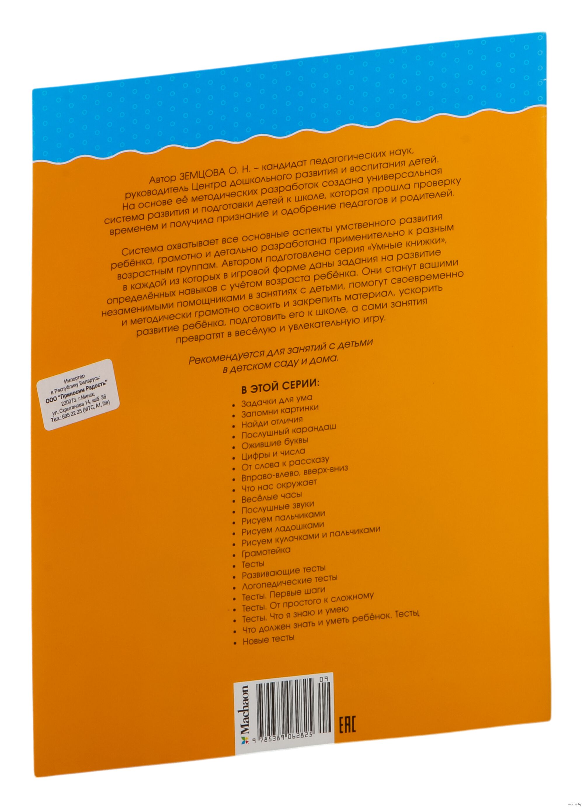 Система охватывает все основные аспекты умственного развития ребенка, грамотно и детально разработана применительно к разным возрастным группам. Автором подготовлена серия "Умные книжки", в каждой из которых в игровой форме даны задания на развитие определенных навыков с учетом возраста ребенка. Они станут вашими незаменимыми помощниками в занятиях с детьми, помогут своевременно и методически грамотно освоить и закрепить материал, ускорить развитие ребенка, подготовить его к школе, а сами занятия превратят в веселую и увлекательную игру.