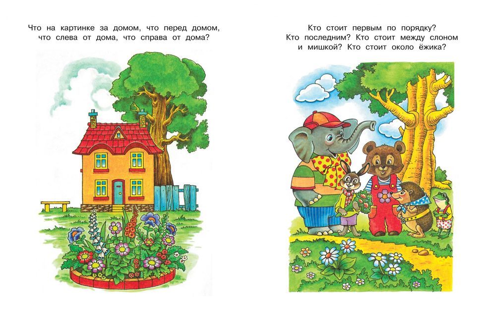 Поощряйте речевую активность ребенка. Хорошо, если он самостоятельно расскажет, как расположены предметы на страничке, пользуясь полными предложениями: "За домом растет дерево, перед домом клумба, слева от дома скамейка, справа забор".