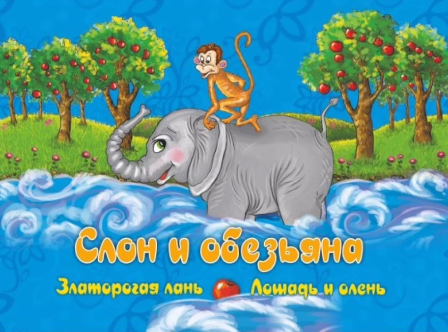 Слон и обезьяна. Златорогая лань. Лошадь и олень