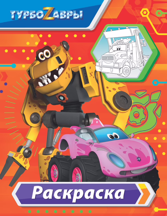 Да-да, динозавры существуют! Они большие, сильные и умеют превращаться в различные машины и механизмы. А ещё они добрые. Раскрась любимых героев – сделай мир Турбозавров ещё ярче!
