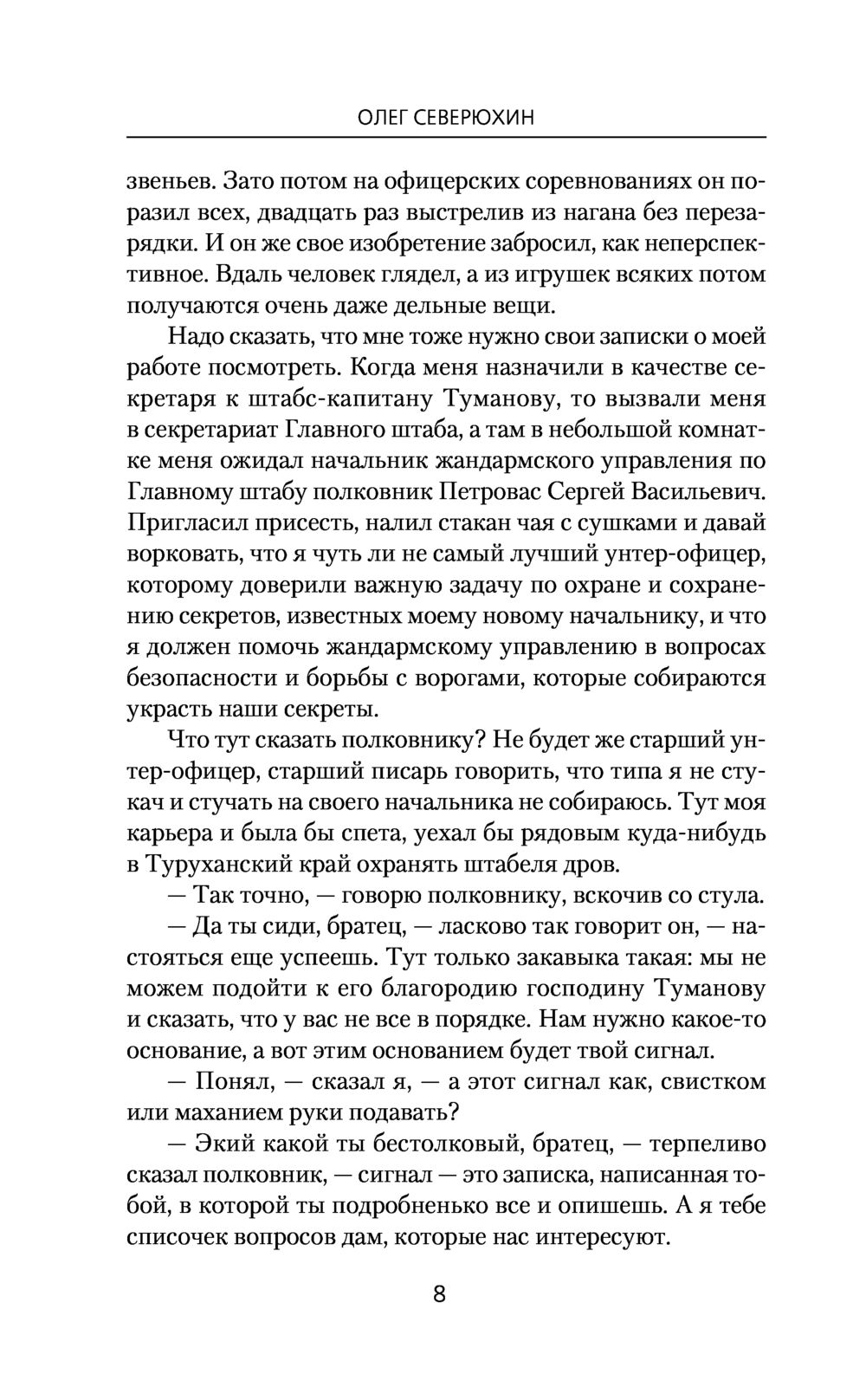 Старший лейтенант пограничных войск Туманов из лета 1985 года попадает в суровую зиму 1907 года в захолустный сибирский городок. Обдумав своё положение, он понял, что правду о себе никому рассказывать нельзя, никто не поверит, и, скорее всего, остаток жизни пройдёт в палате сумасшедшего дома. Единственный выход – сослаться на потерю памяти, а дальше... Ведь все умения, навыки и привычки – при нём, а это такой козырь! Обладая природной смекалкой и используя свои знания, Туманов легализуется в условиях царской России и поступает на военную службу, где делает головокружительную карьеру. Невероятное происшествие сталкивает его сначала с монахом Григорием Распутиным, а противодействие с социал-демократами – с премьер-министром Петром Столыпиным. Все это наводит Туманова на мысль, что он может попытаться изменить историю.