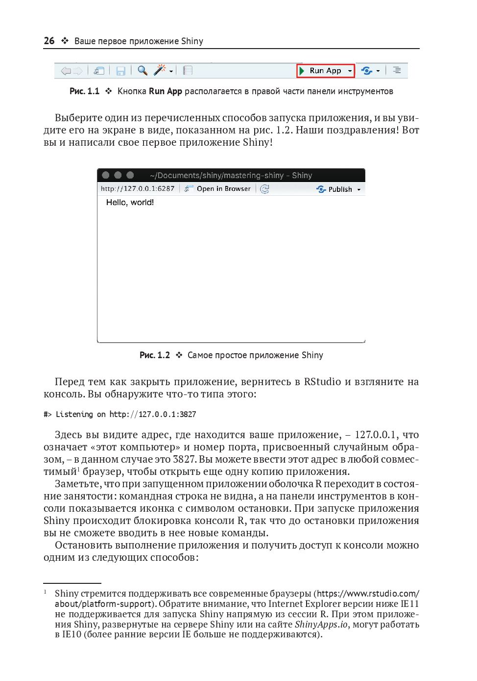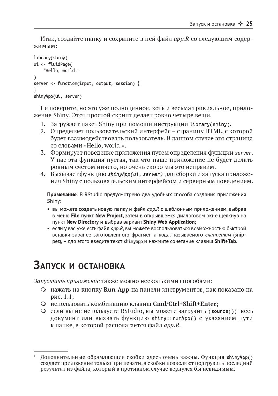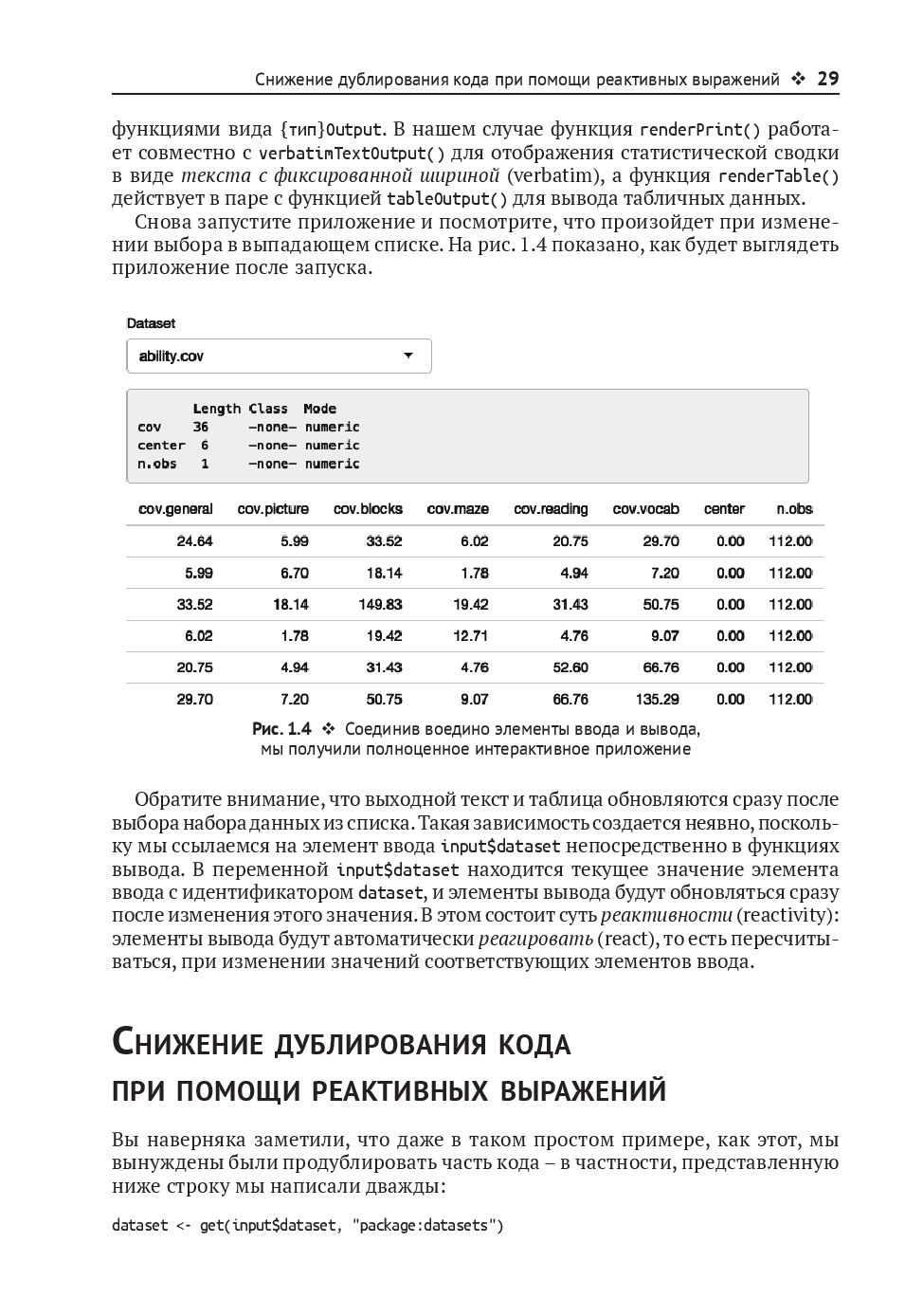 Хэдли Уикхэм из RStudio покажет аналитикам данных, статистикам и научным исследователям, не обладающим глубокими познаниями в области HTML, CSS и JavaScript, как создавать мощные веб-приложения на языке R. Книга, которую вы держите в руках, является полноценным руководством по фреймворку Shiny, который поможет вам из новичка в этой области стать настоящим экспертом и писать масштабные, сложные и эффективные приложения.