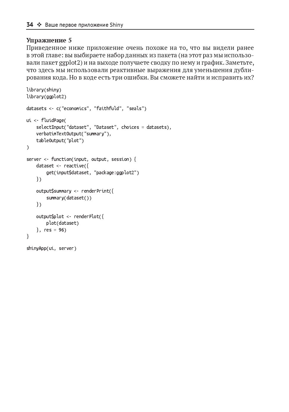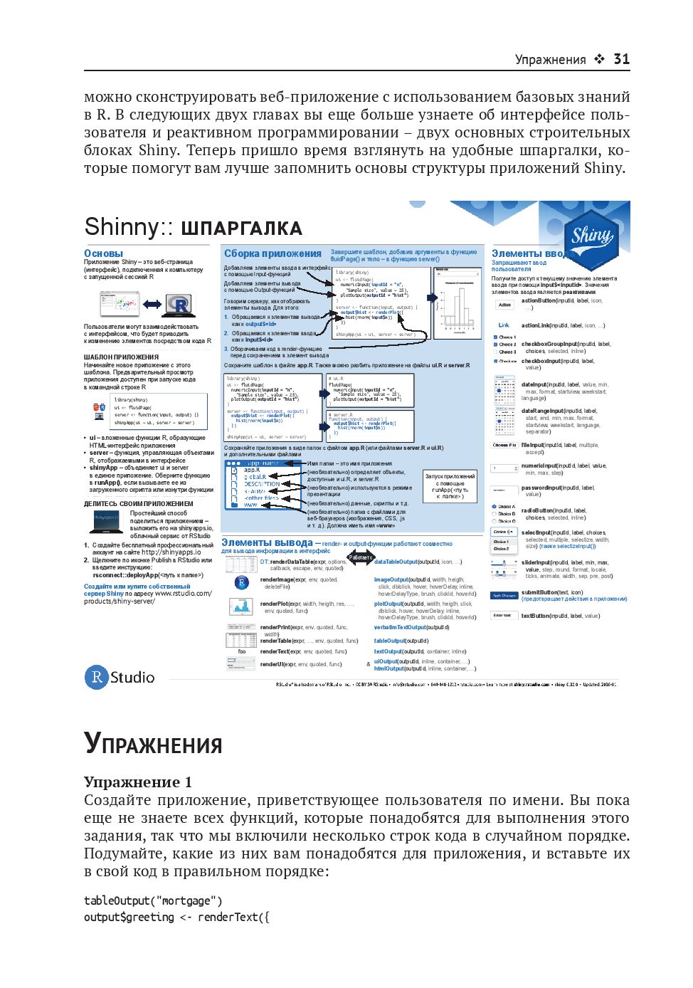 Изучите веб-фреймворк Shiny и выведите свои навыки владения языком программирования R на новый уровень. Оставьте в прошлом статические отчеты – с Shiny вы сможете создавать полностью интерактивные веб-приложения для анализа данных. Пользователи смогут легко перемещаться между наборами данных, создавать и исследовать подмножества, выборки и срезы, запускать модели с нужными им значениями параметров, разрабатывать собственные визуализации и многое другое.