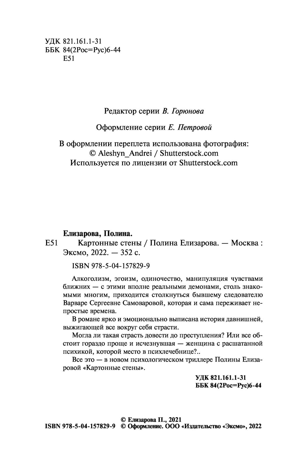 Все это – в новом психологическом триллере Полины Елизаровой "Картонные стены".