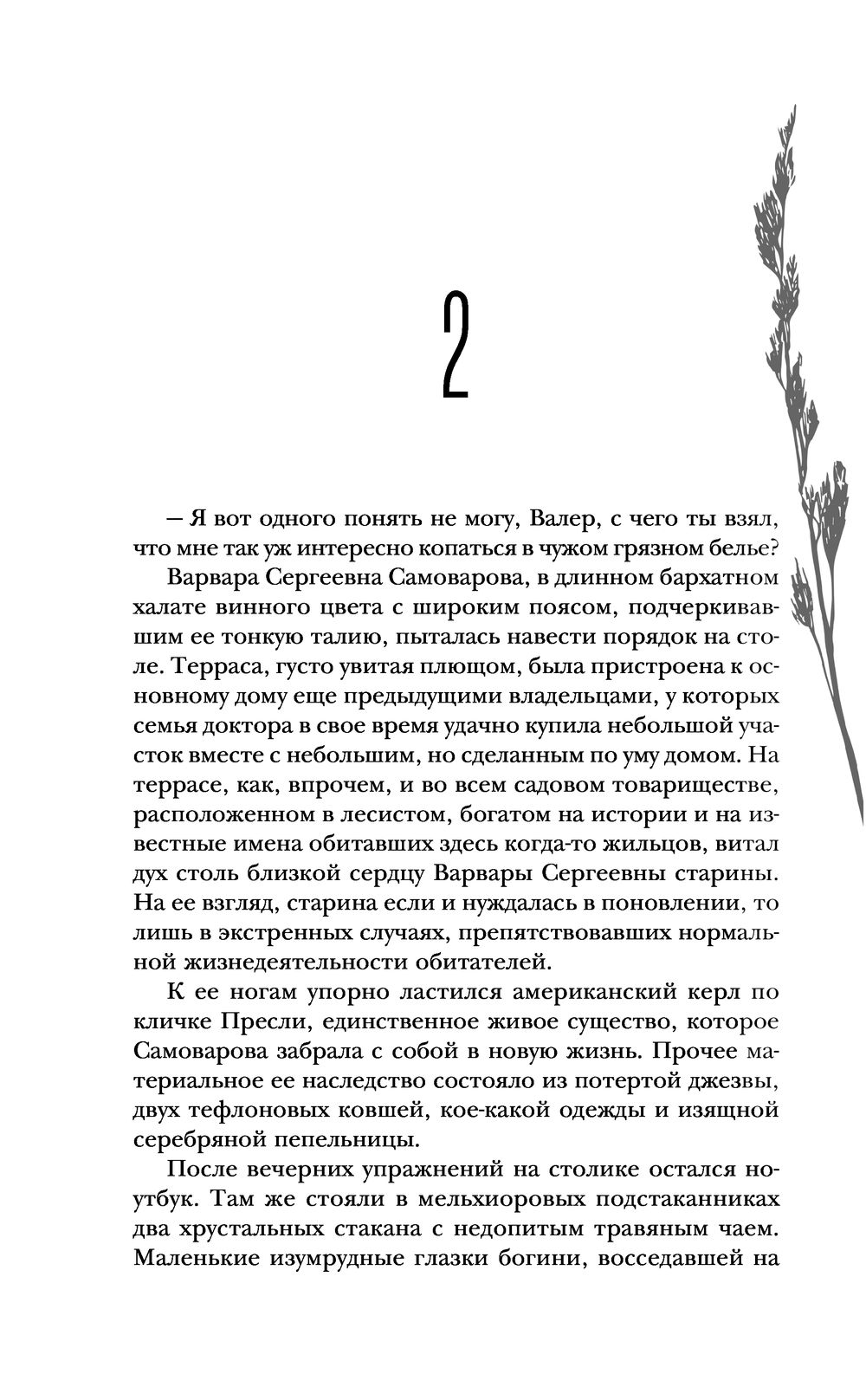 Алкоголизм, эгоизм, одиночество, манипуляция чувствами ближних – с этими вполне реальными демонами, столь знакомыми многим, приходится столкнуться бывшему следователю Варваре Сергеевне Самоваровой, которая и сама переживает непростые времена. В романе ярко и эмоционально выписана история давнишней, выжигающей все вокруг себя страсти. Могла ли такая страсть довести до преступления? Или все обстоит гораздо проще, и исчезнувшая – женщина с расшатанной психикой, которой место в психлечебнице?..