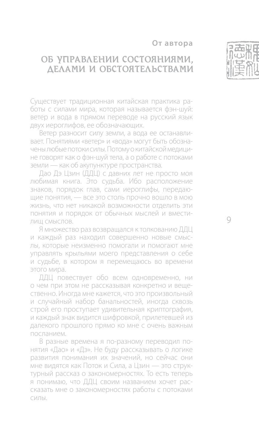 Для Бронислава Виногродского, переводчика и комментатора, "Дао Дэ Цзин" не только любимая книга, но и бесконечный источник мудрости, книга-судьба, способная направлять потоки силы, с помощью которых человек может в совершенстве управлять своей жизнью и, следовательно, быть управителем целого мира.